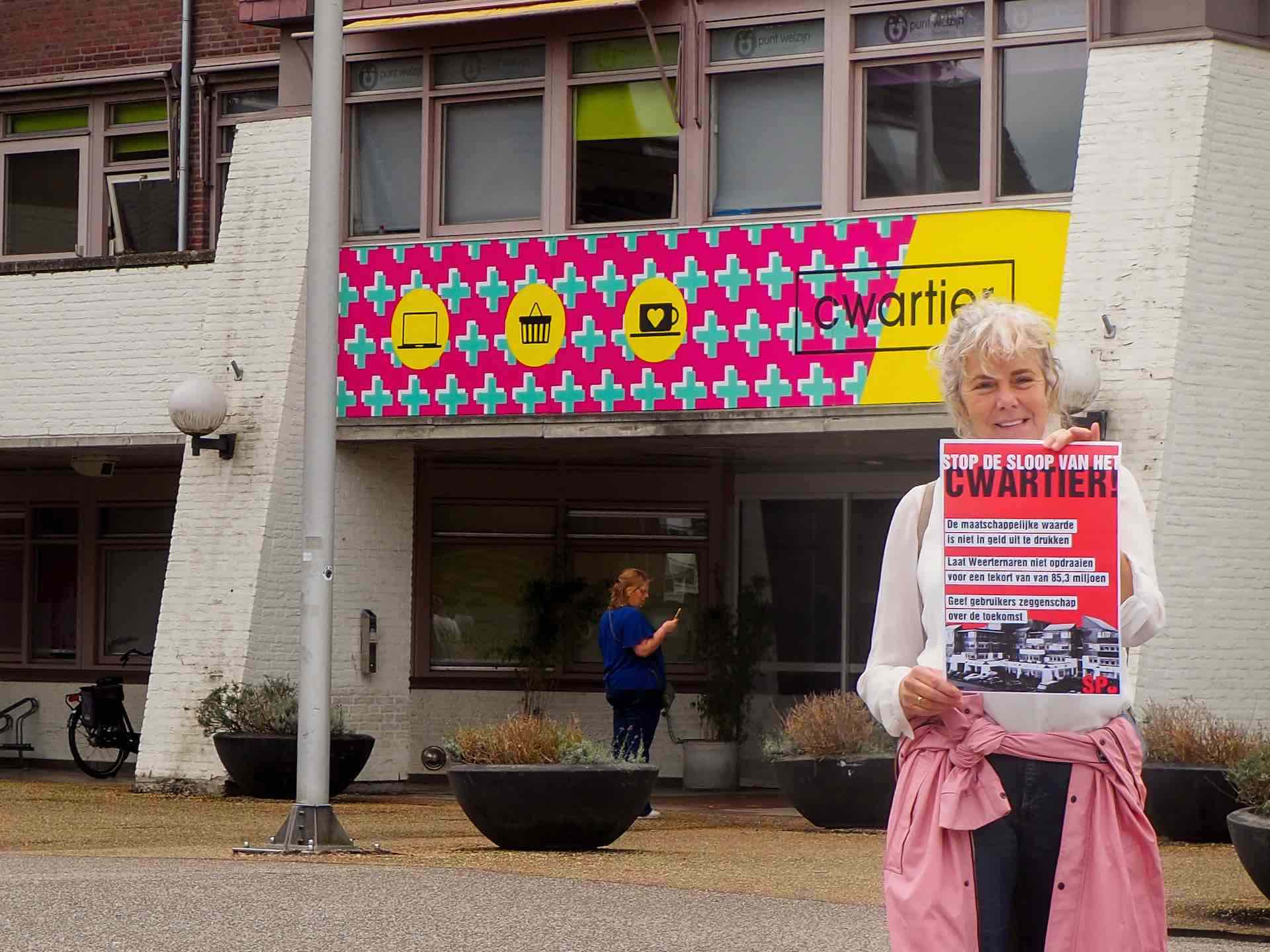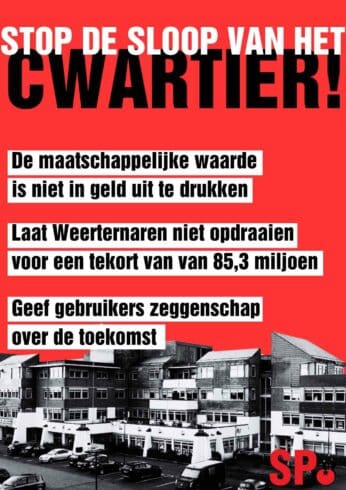 Op de dag waarop de gemeenteraad besluit over de sloop is de SP een poster-actie gestart. Hierop is te lezen dat de waarde van het Cwartier niet in geld is uit te drukken, dat Weertenaren niet moeten opdraaien van het tekort van 83,5 miljoen en dat de Cwartiermaker zeggenschap moeten hebben over hun toekomst.