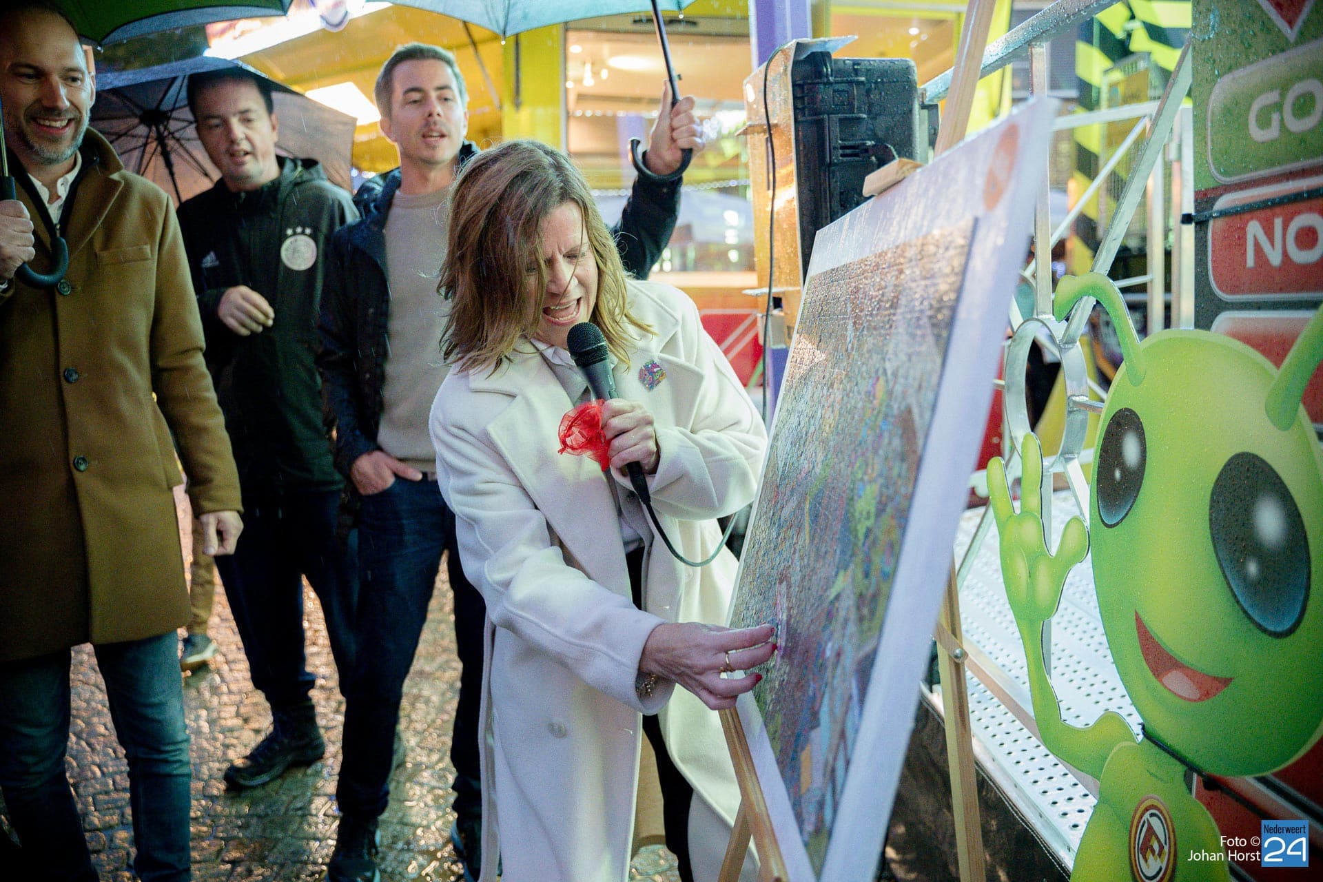 Gisteravond werd de kermis officieel geopend door wethouder Michèle Ferrière. Dat deed ze door het laatste stukje van de speciale kermispuzzel te leggen. De muzikale omlijsting werd verzorgd door harmonie Sint Antonius Weert. Hoewel het niet helemaal droog was gisteravond kon daarna alsnog het feest beginnen.