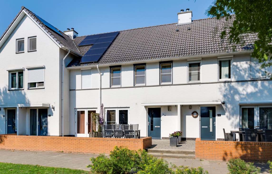 Te koop royale tussenwoning met berging, eigen parkeergelegenheid en carport, vrij gelegen aan een groenvoorziening, in de gewilde woonwijk “Kerneelhoven”.