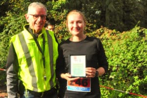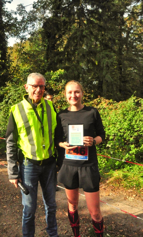 Er wordt altijd bijgehouden wie een parcoursrecord verbreekt. Bij de jeugd gebeurt dat veelvuldig. Maar in een van de vorige lopen had Merel Stiekema een record gelopen op 4.0 kilometer voor vrouwen leeftijd 16-39 jaar. Zij verbeterde de tijd met 32 seconden bracht die van 18.11 naar 17.39. Waarvoor zij een aandenken ontving.