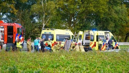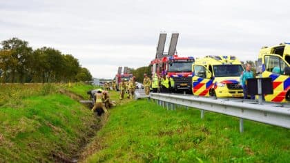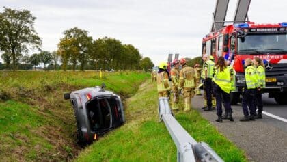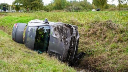 Een auto is daar door onbekende reden van de weg geraakt, in de naastgelegen sloot belandt en daarbij over de kop geslagen. In de auto zaten twee inzittenden, waarvan de brandweer een persoon uit de auto moest bevrijden. Beide personen zijn uit voorzorg meegenomen naar het ziekenhuis.
