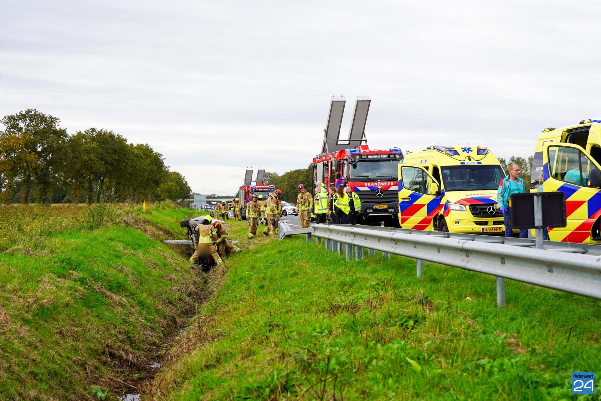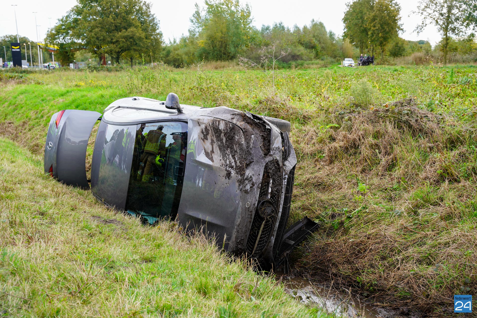 Een auto is daar door onbekende reden van de weg geraakt, in de naastgelegen sloot belandt en daarbij over de kop geslagen. In de auto zaten twee inzittenden, waarvan de brandweer een persoon uit de auto moest bevrijden. Beide personen zijn uit voorzorg meegenomen naar het ziekenhuis.
