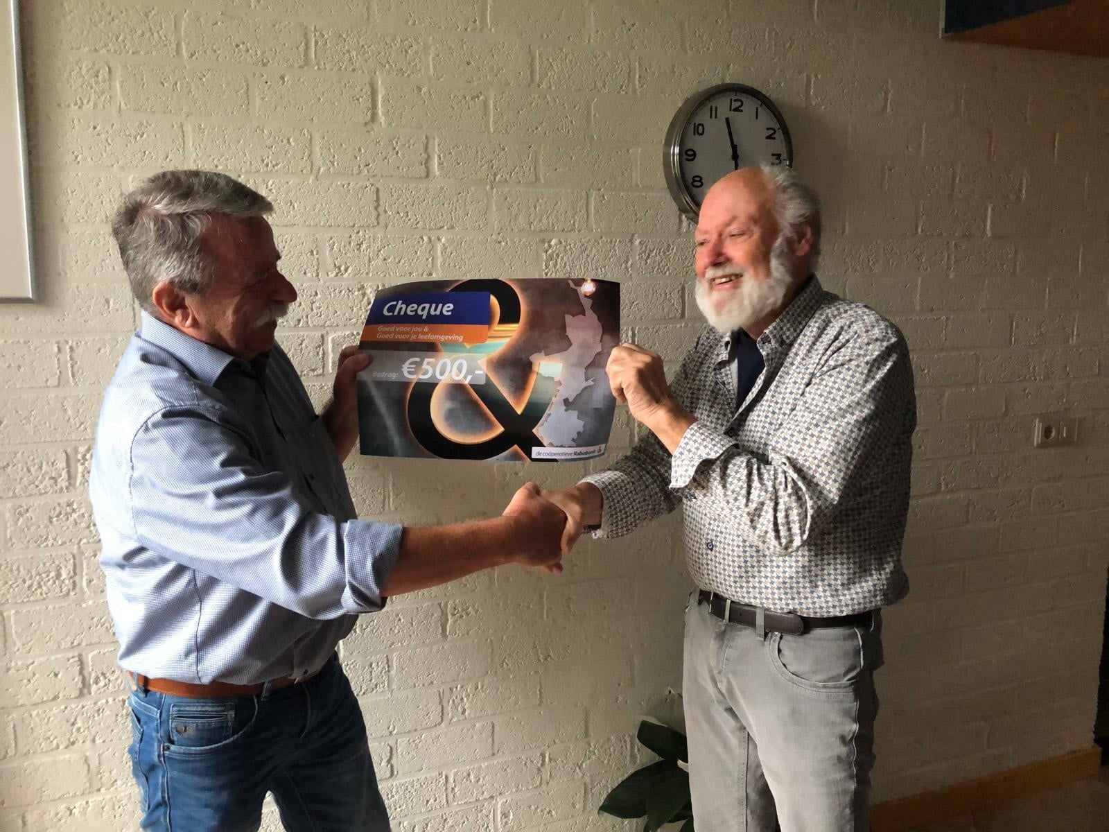 Maandagmorgen werd Hub Wullems als voorzitter van de buurtvereniging “De Houwakker”aan het adres van Theu van Gog blij verrast met een cheque van €500,- voor de buurtvereniging.