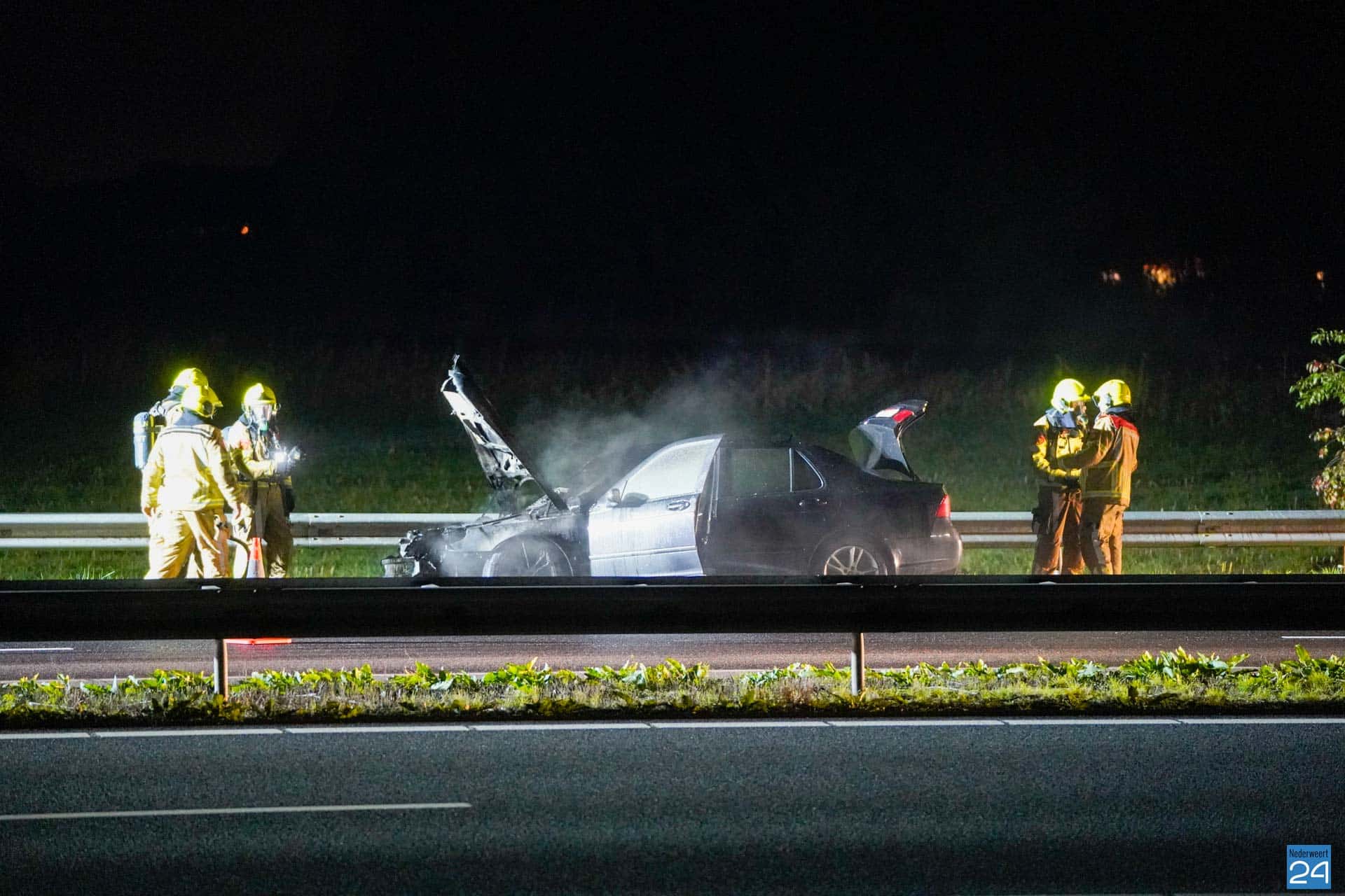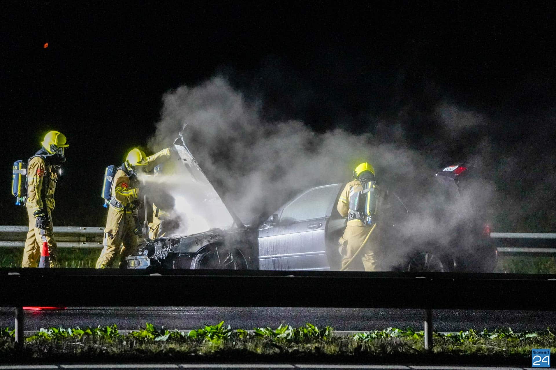 De brandweer heeft maandagavond even na elf uur een autobrand geblust op de snelweg A2 bij Hunsel. Niemand raakte gewond.