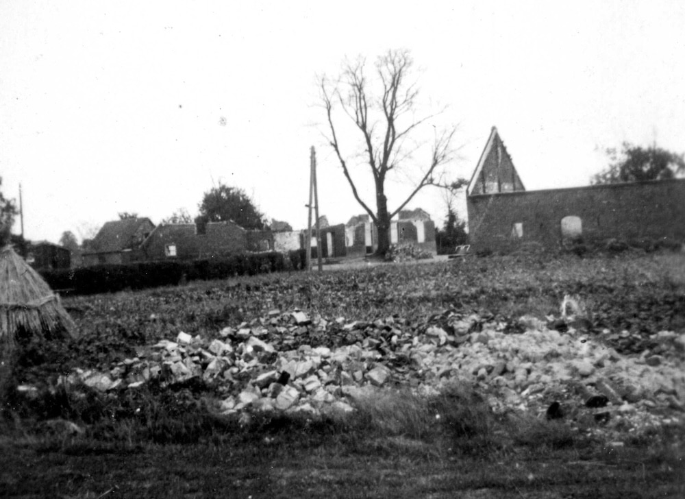 Door de Duitse troepen in brand gestoken boerderijen in de omgeving van Uliker en Winnerstraat. Foto collectie SGN.