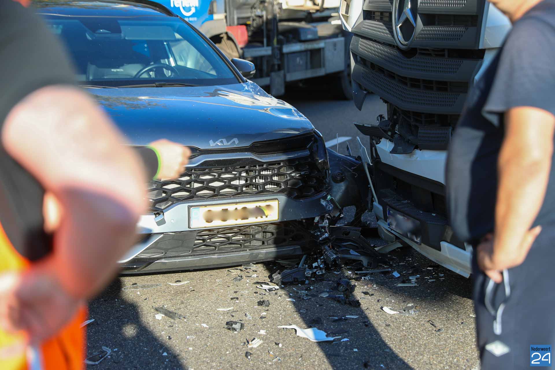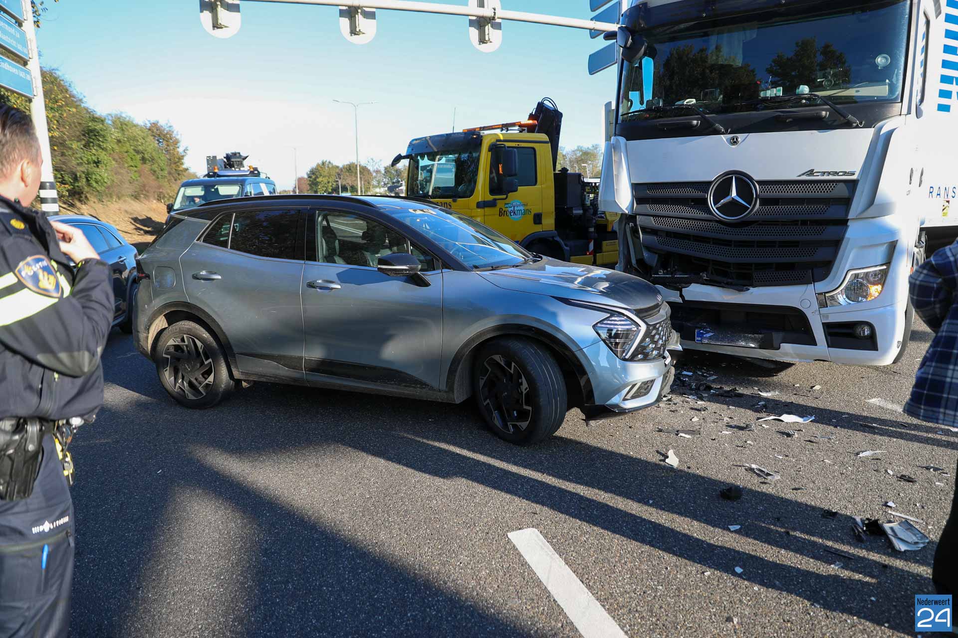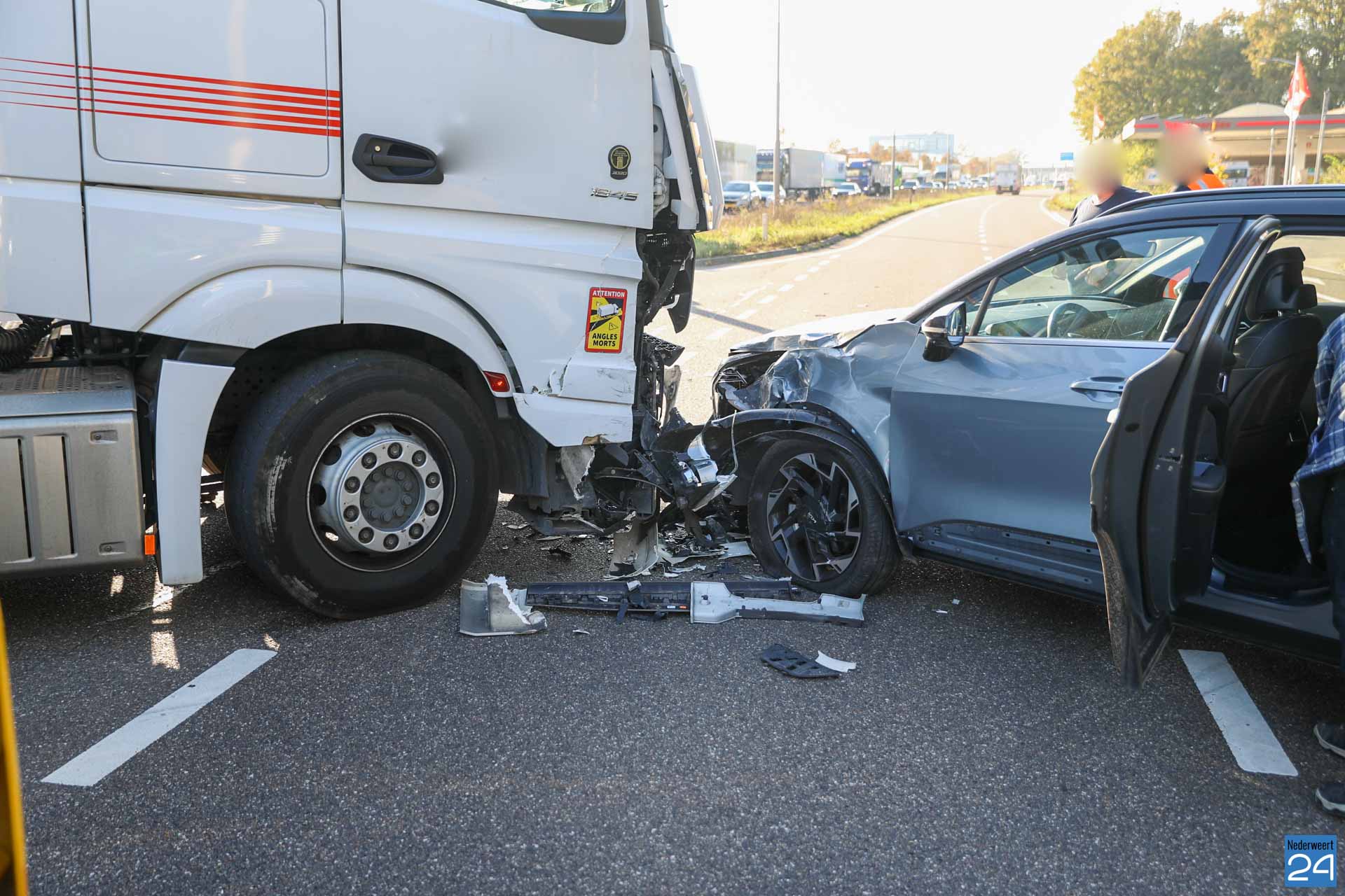 Auto en vrachtwagen botsen op Randweg Zuid in Nederweert