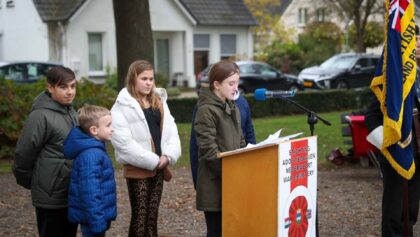 Vanaf 14.30 uur stroomden de bezoekers binnen en werden ze verwelkomd met warme woorden en een gevoel van verbondenheid. Om 15.00 uur startte de officiële herdenking, waarin respectvolle toespraken, stille momenten en het leggen van kransen centraal stonden.