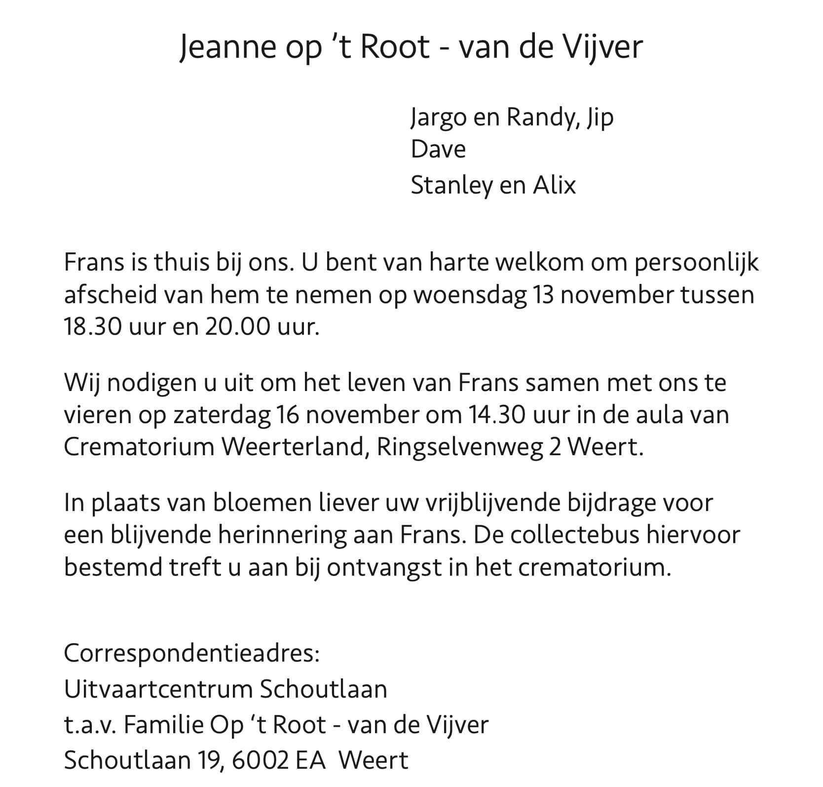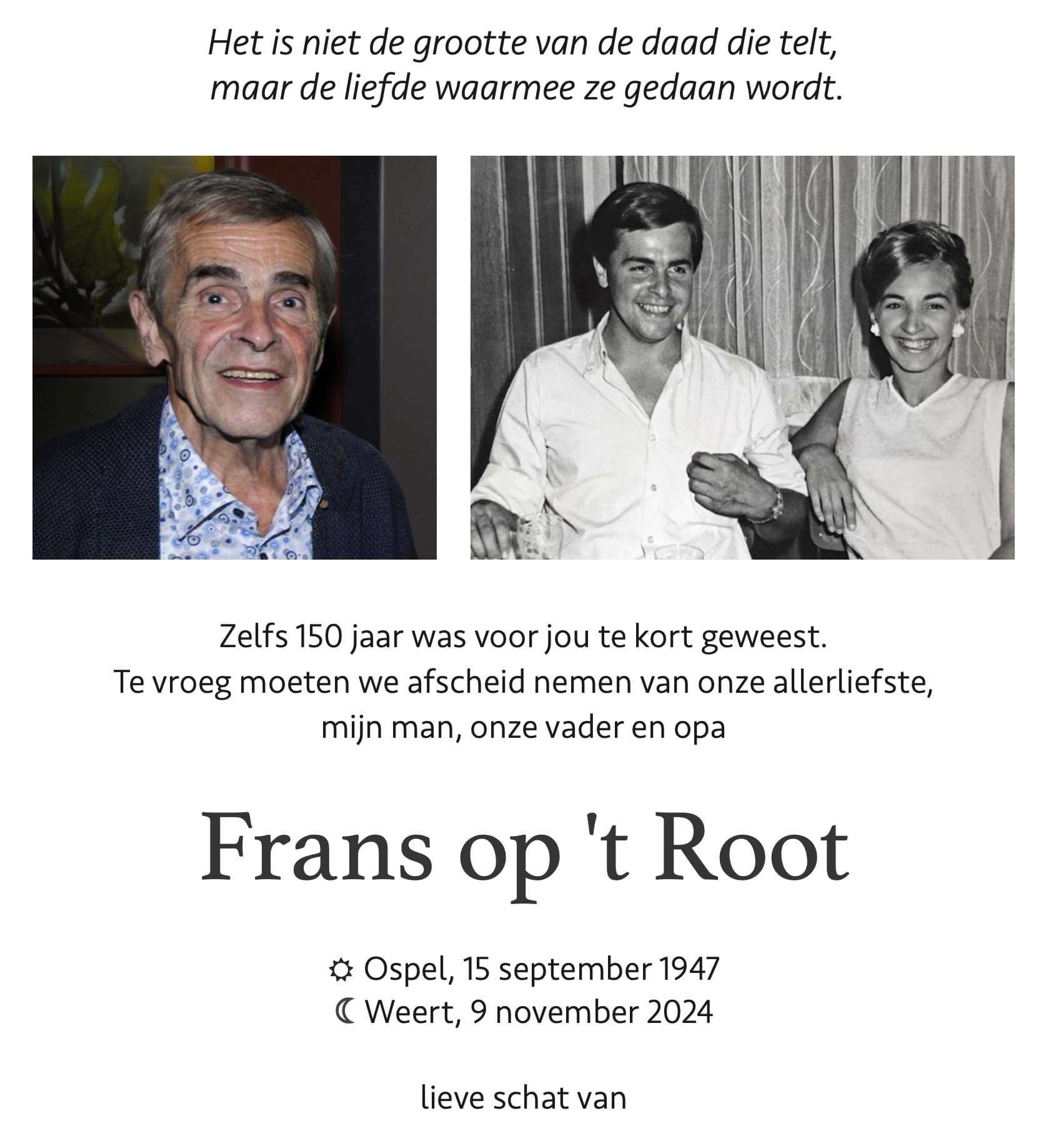 Overlijdensbericht | Frans op ’t Root †