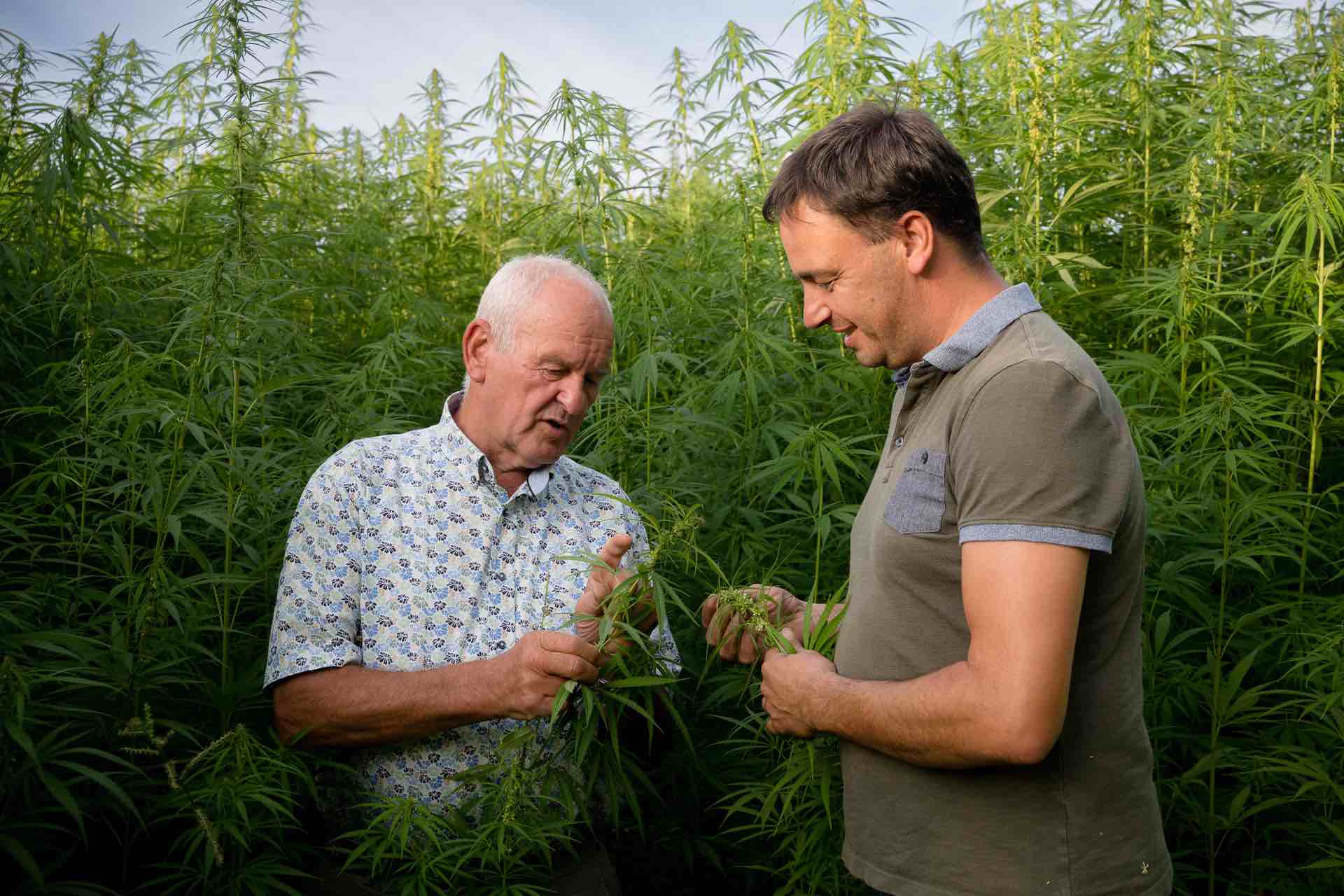 Een gewas telen is niet nieuw voor de familie Van Leeuwen. Als veehouders teelden Aad en Arjan jarenlang de maïs voor hun varkens. De teelt van vezelhennep is eenvoudig, maar de verwerking is bewerkelijk. Arjan licht toe: “Bij de oogst worden de stengels van de ruim drie meter hoge plant in stukken van een meter gesneden. Deze blijven vier tot zes weken op het veld liggen zodat de bastvezels loskomen van de houtachtige kern. Dan maken we er ronde balen van die voor machinale verwerking naar de loods gaan. Na het zwingelen in trommels ontstaat uit de vezels een wolachtig materiaal dat geschikt is voor de biobased bouw. Door te investeren in geavanceerde machines krijgen we fijnere wol die ook geschikt is voor de textielindustrie. Het binnenste deel van de houten stengel kan gebruikt worden als bestanddeel van beton of als strooisel voor in de koeienstal. Ook de toppen van de vezelhennepplant, die olie en zaden bevat, gaan we verwaarden. Zo gebruiken we dus de hele plant en gaat er niets verloren.”