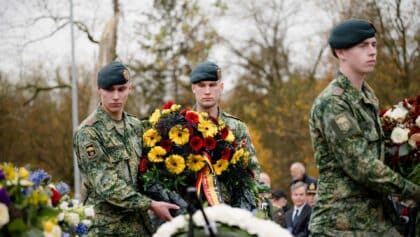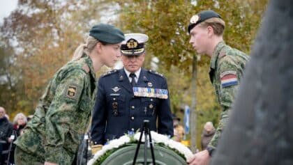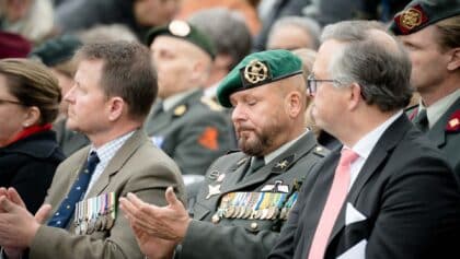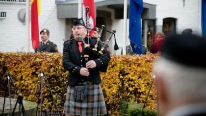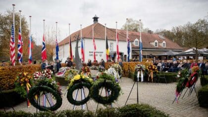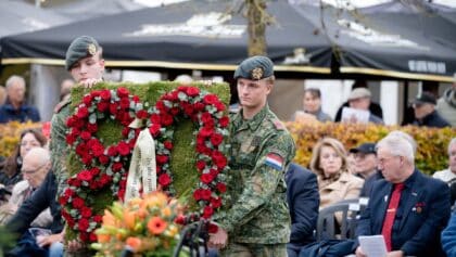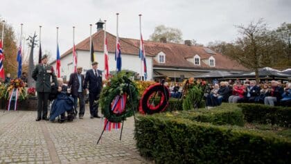 Een bijzonder en aangrijpend element van de ceremonie was de tentoonstelling van 300 foto’s van omgekomen militairen uit de twaalf betrokken landen. Deze persoonlijke portretten herinneren aan de menselijke kosten van oorlog en brengen het verlies op indringende wijze in beeld.