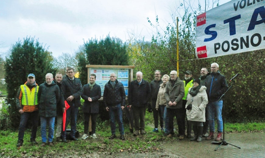 Gelukkig sprong de Gemeente Weert bij, samen met sponsors Hema en Posno-Sport, bij zodat ze het project rond hebben gekregen. Toen kon het Team Volksloop aan het werk. De opdracht werd gegeven aan Weerter Landhout die voor ruim 55 palen zorgden en die een het houten deel van het informatiebord maakten.