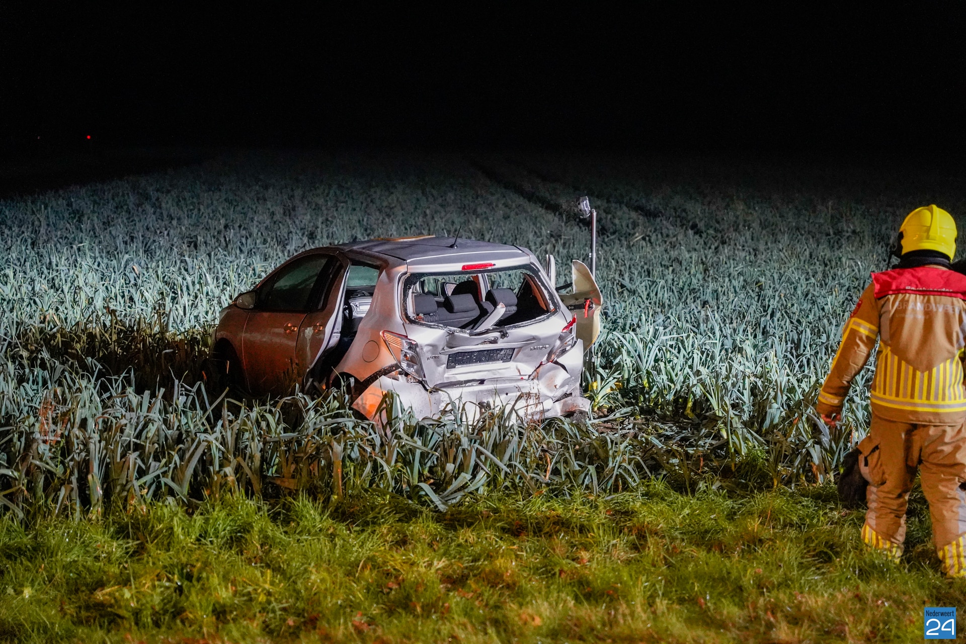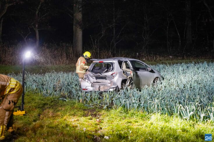 Een personenauto is zondagavond achterop een andere personenauto gebotst in Stramproy. Dat gebeurde op de Maaseikerweg. De voorste auto schoot door en belandde op een akker.