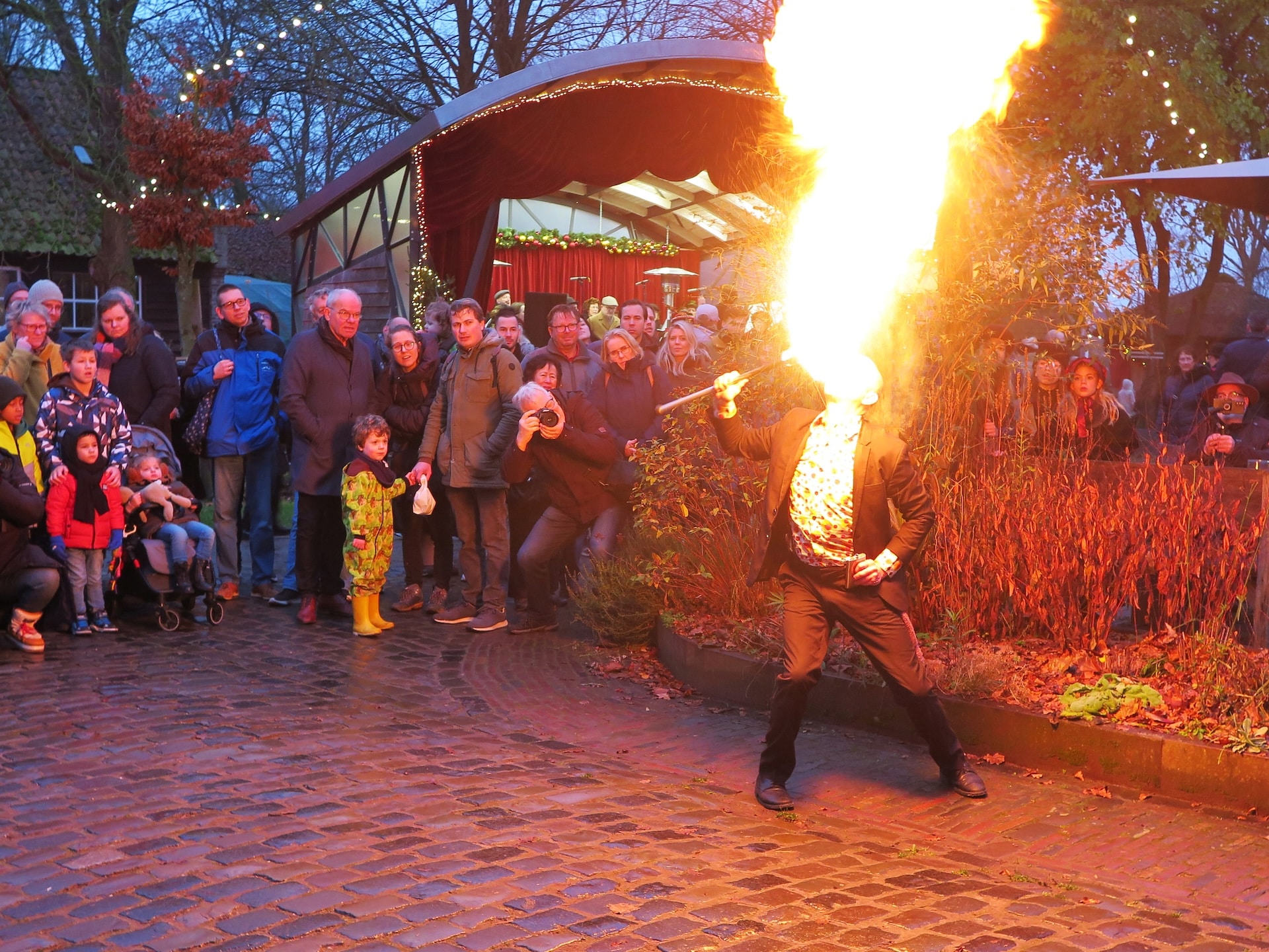 De zangers, zangeressen en de live muzikanten buiten, in de tent en in de herberg zorgden voor de kers op de taart. Onder het genot van een hapje en een drankje was het zeker op vele plekken goed toeven en konden de voeten even letterlijk en figuurlijk van de vloer. Even een rustmoment voor het gezin om alle indrukken van de dag te verwerken. En dan loop je buiten meteen weer tegen een zee van vuurspuwers, goochelaar of de schoorsteenveger die gevaarlijke rondjes draait met zijn houten ladder op. En hoe mooi is het om in een wolk van mooie zeepbellen weer meegezogen te worden in de betoverende sfeer.