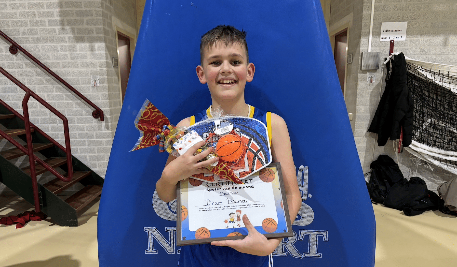 Het jaar zit er alweer bijna op en dat betekent dat het tijd was om voor de laatste keer in 2024 de speler van de maand bekend te maken. Dit werd wel op een heel bijzonder moment gedaan, namelijk na het spelen van het jaarlijkse ‘ouders versus kinderen’ toernooi. Nadat de U12 deze enorm spannende wedstrijd met 1 punt verschil had gewonnen, mocht Bram de prijs voor speler van de maand december in ontvangst nemen.