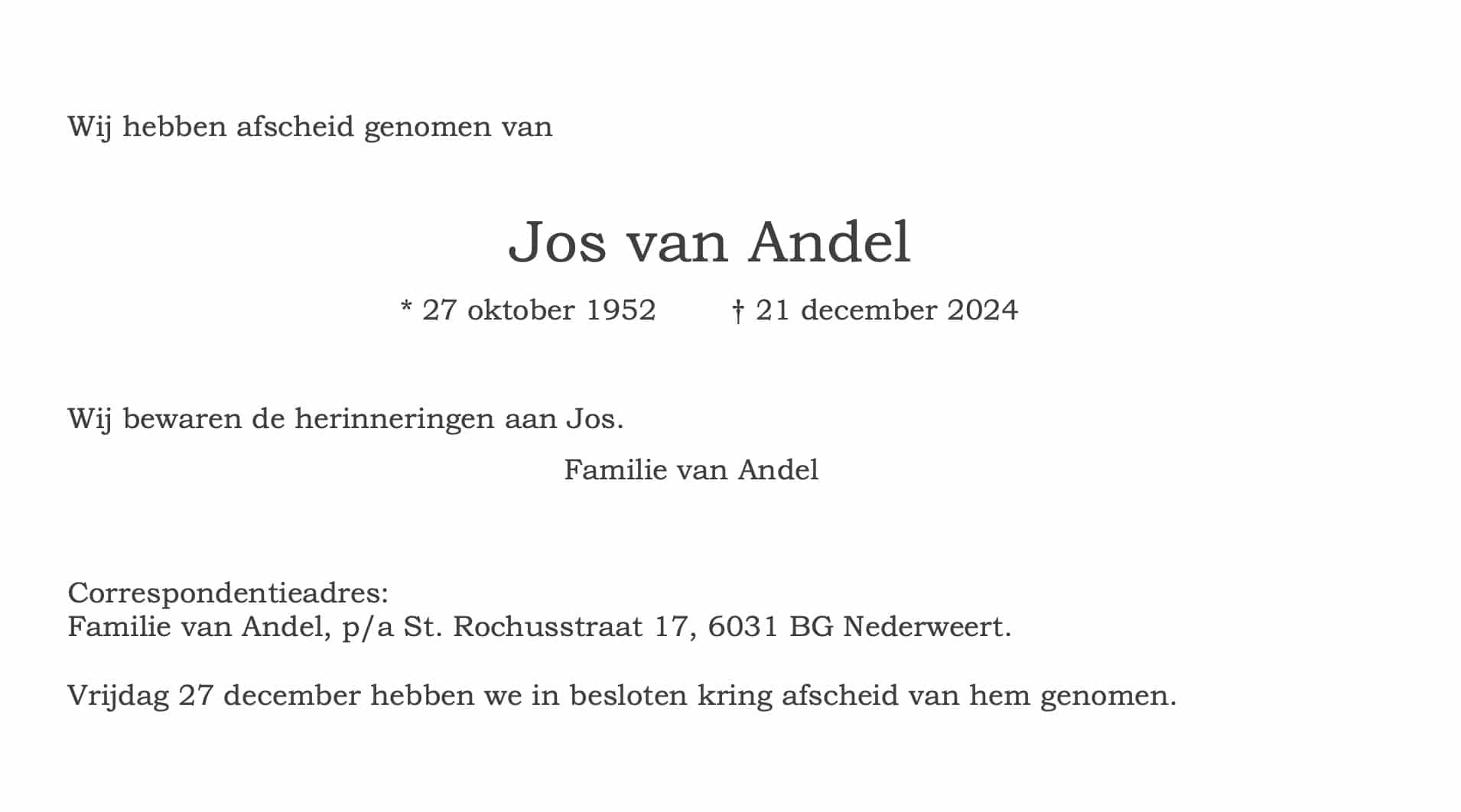 Overlijdensbericht | Jos van Andel †