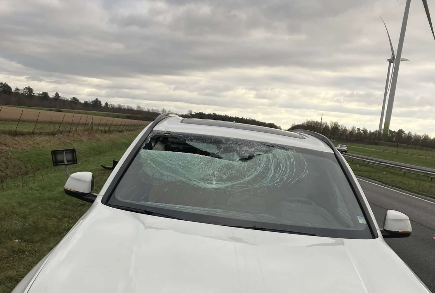 Bizar | Dak van cabrio valt op andere auto op A2 bij Nederweert