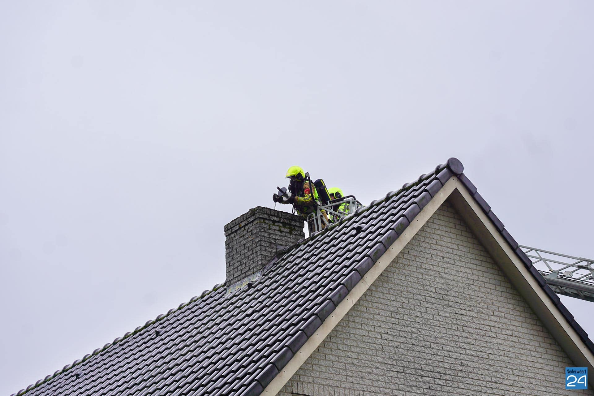 De brandweer was al snel met de ladderwagen te plaatse om de brand in de schoorsteen te onderzoeken. In eerste instantie gebruikte de brandweer een ramoneur om de schacht van de schoorsteen vrij te maken, maar er moest uiteindelijk ook ander materieel aan te pas komen om de oorzaak van de brand op te lossen.