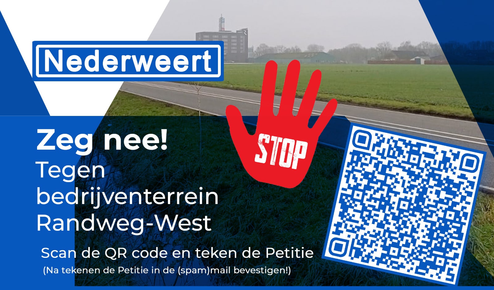 Door op deze link te klikken kun je de petitie ondertekenen. Ook kan via de bijgevoegde QR-code de petitie getekend worden. Voor verdere informatie kun je contact opnemen met industrieterreinnederweert@gmail.com
