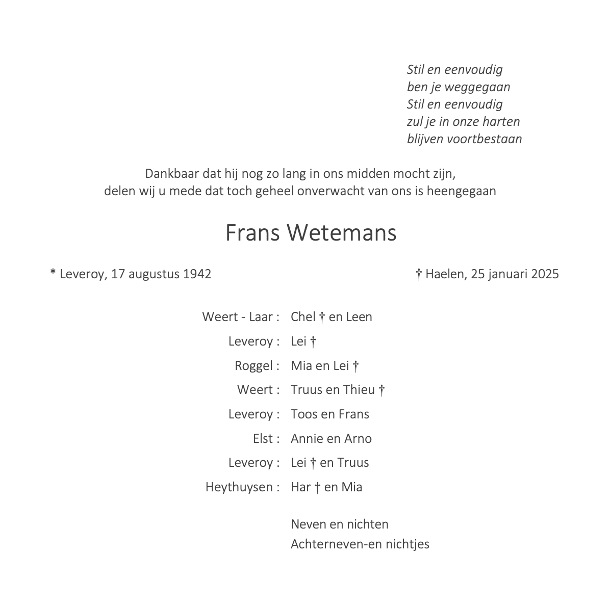 Overlijdensbericht | Frans Wetemans †
