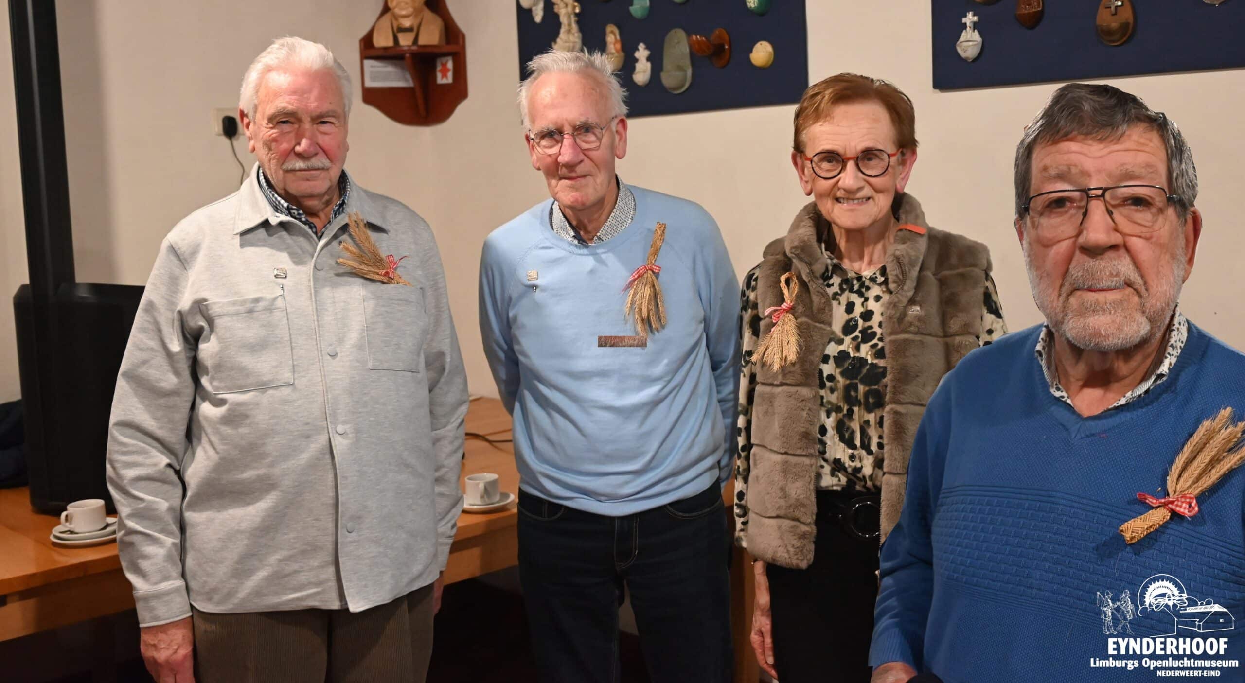 Dit jaar viel de eer te beurt aan een 4-tal vrijwilligers die in een goed gevulde museumschuur onder welgemeende applaus van de aanwezigen op feestelijke wijze door het bestuur werden gedecoreerd met de daarvoor speciaal ontworpen versierselen. Mien Vaes (lid van de bakkersgroep), Jan Montforts (mandenvlechter), Paul Kessels (gids) en Robert Aarts (klompenmaker). Naast de ambachten die bij de namen genoemd staan is het niet vreemd als deze vrijwilligers zich ook voor tal van andere werkzaamheden en taken inzetten.