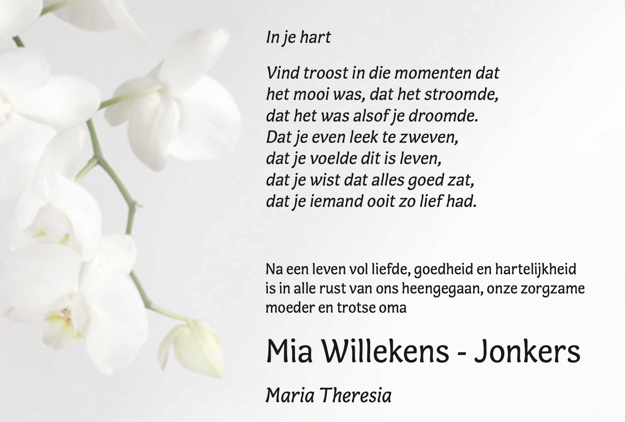 Overlijdensbericht | Mia Willekens – Jonkers †