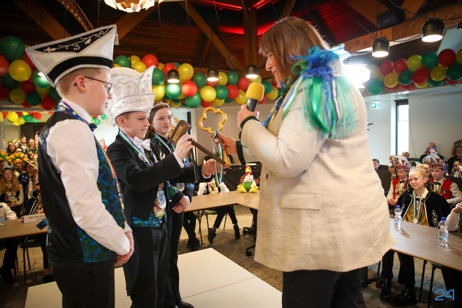 Jeugdprins Jens I en jeugdprinses Isa van J.K.V. De Krielkes, en Jeugdprins Wout I en jeugdprinses Noor van de Jong Vlikkestaekers, kregen een medaille met de sleutel van de ‘fietsekelder’. Vervolgens kregen Jeugdprins Bren I en jeugdprinses Fleur van V.V. De Pinmaekers uit handen van de burgemeester de sleutel van het ‘achterpörtje’ overhandigd. Hiermee heeft de jeugd de macht in handen. In ieder geval tot vanavond, want dan krijgt Prins Dirk I van V.V. de Pinmaekers de sleutel van de voordeur van het gemeentehuis.