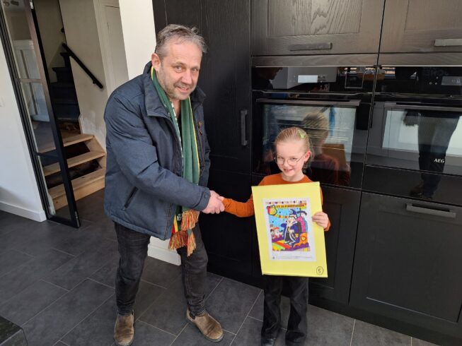 De gelukkige winnaars kregen een bezoek van ‘aod prîns’ Mark I.