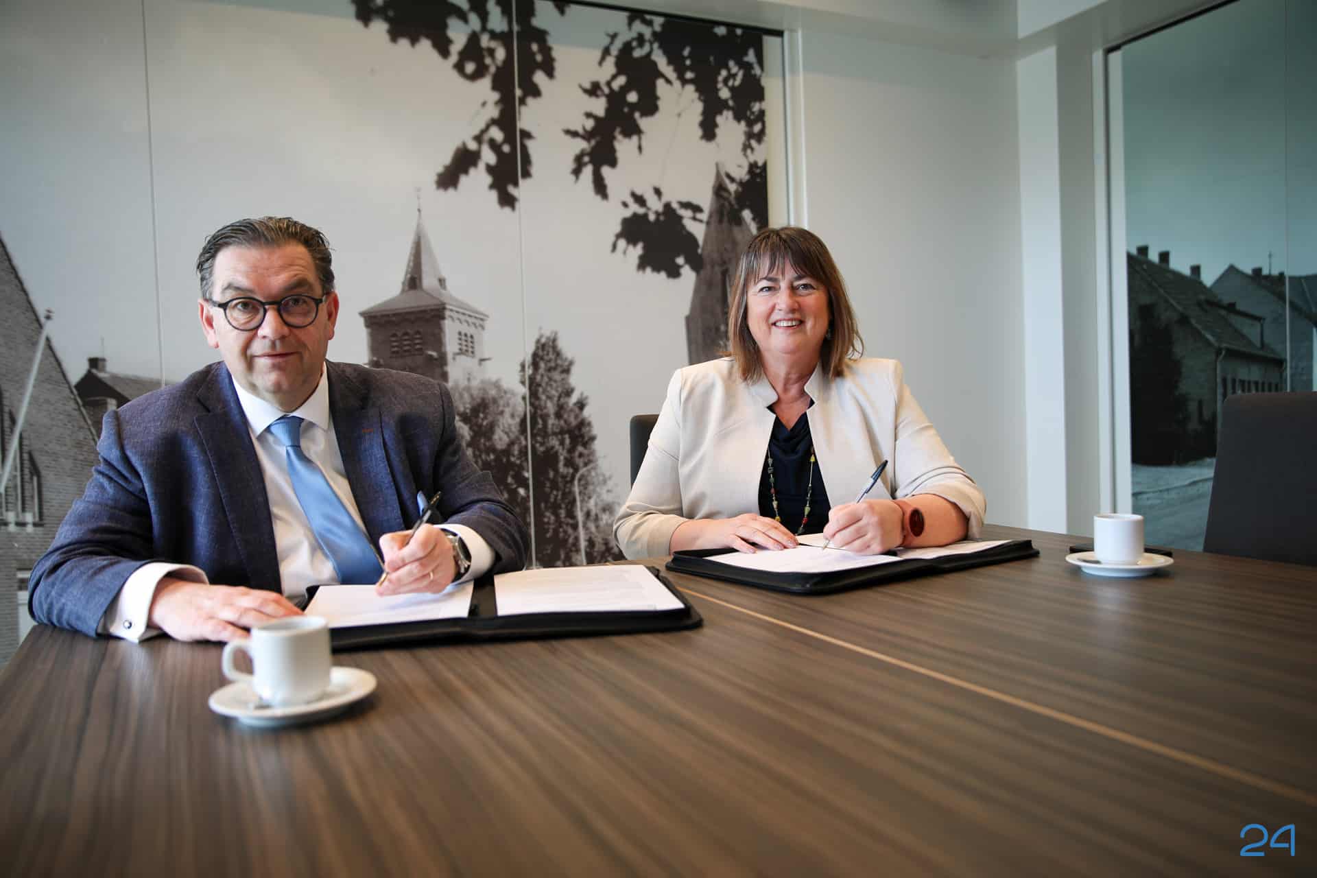De gemeenten Nederweert en Weert versterken hun samenwerking op ruimtelijk-economisch gebied. Burgemeester Birgit Op de Laak van Nederweert en burgemeester Raymond Vlecken van Weert ondertekenden daarvoor vandaag (donderdag 20 maart 2025) een overeenkomst.
