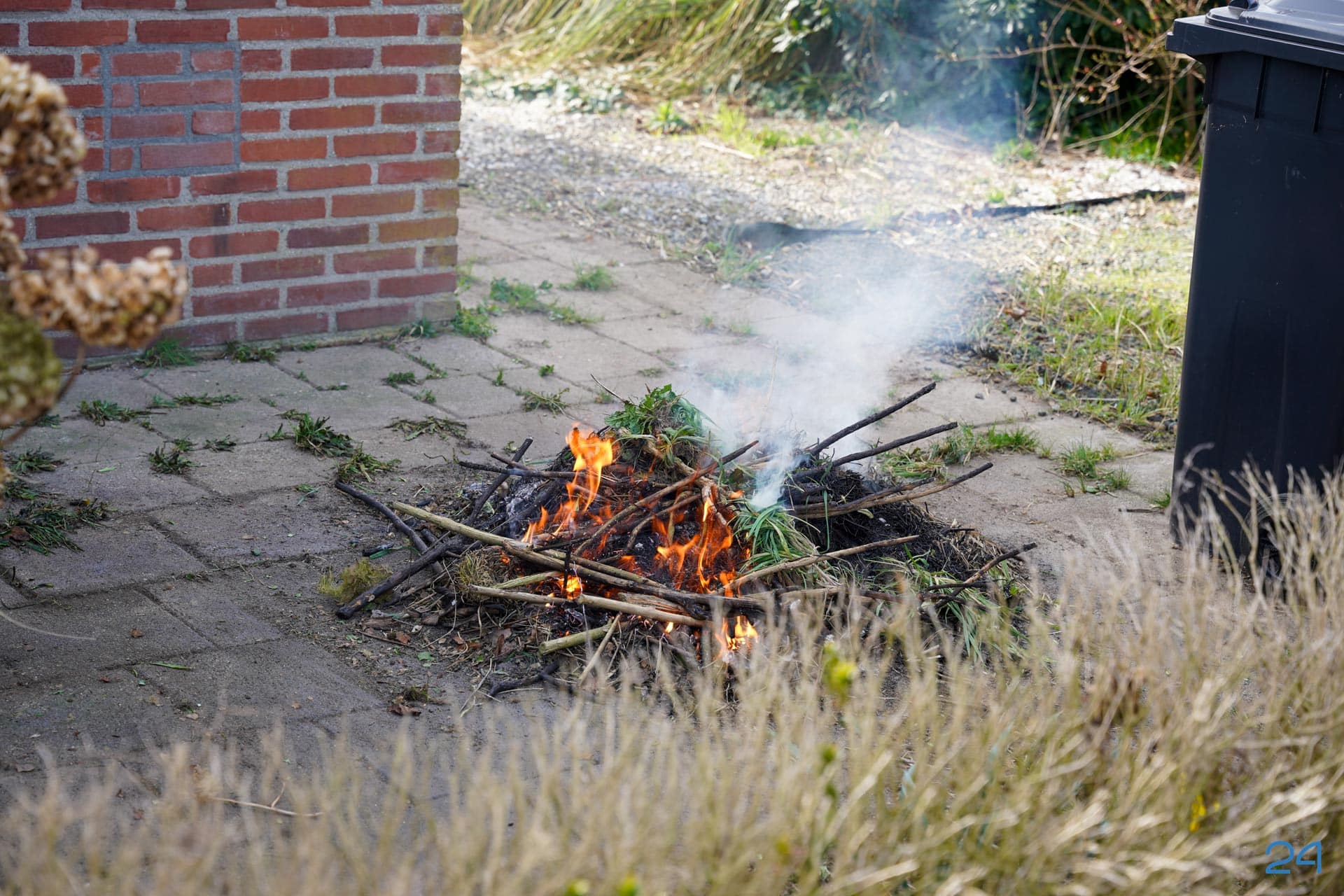 Een man had in zijn voortuin een stapel tuinafval in brand gestoken, wat volgens buurtbewoners zorgde voor hoge vlammen en voornamelijk veel rook. Een van de buren zag de vlammen boven het heggetje uitkomen en besloot de brandweer te bellen om te voorkomen dat de vlammen zouden overslaan.