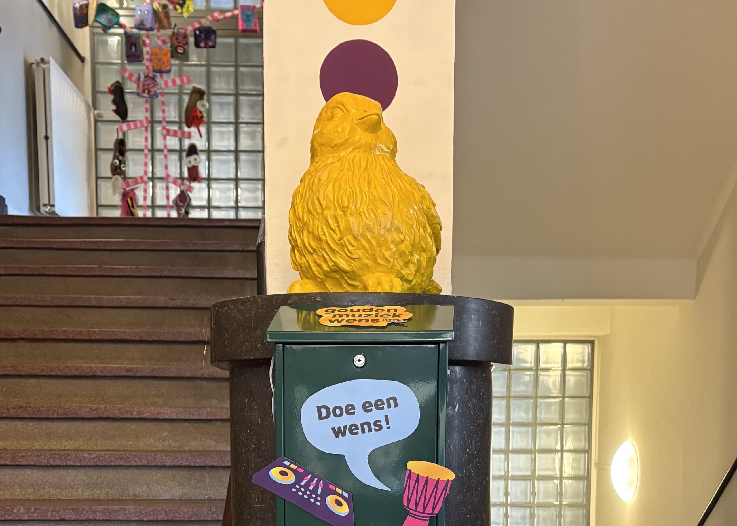 - Zoek de Gouden Muziekwens-brievenbus in de foyer