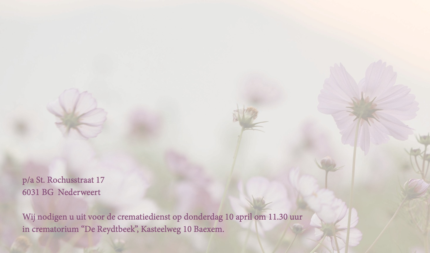 Helaas moest ik via Nederweert24 vernemen dat Tante Annie van Ome Sjef niet langer meer onder ons is.De laatste keer dat ik haar zag was op haar Gouden Bruiloft, wat al een poosje geleden is en nu zal ik haar dus nooit meer zien, wat heel jammer is, want van mijn ooit 19 ooms en tantes van de kant van mijn Vader – Sjeng van Riet – zijn er nog maar twee over, waaronder ome Sjef en hierbij gecondoleerd voor dit verlies.