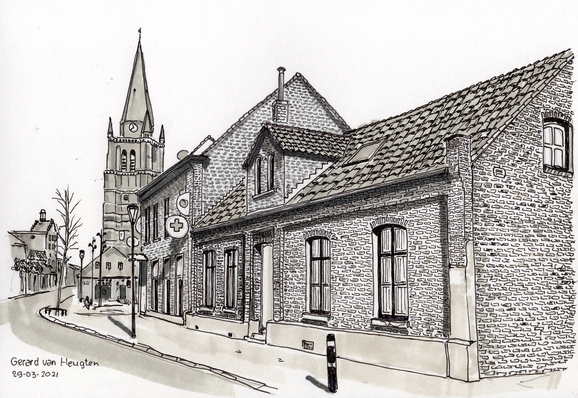 De afgelopen jaren heeft Gerard van Heugten de gehele gemeente Nederweert doorkruist en vele (monumentale) panden getekend. De 71-jarige illustrator, geboren en getogen in Budschop, woont momenteel met zijn echtgenote in Nederweert en kent door het maken van de vele pentekeningen Nederweert op zijn duimpje. “Er is zoveel moois te tekenen in Nederweert” vertelt Gerard enthousiast.