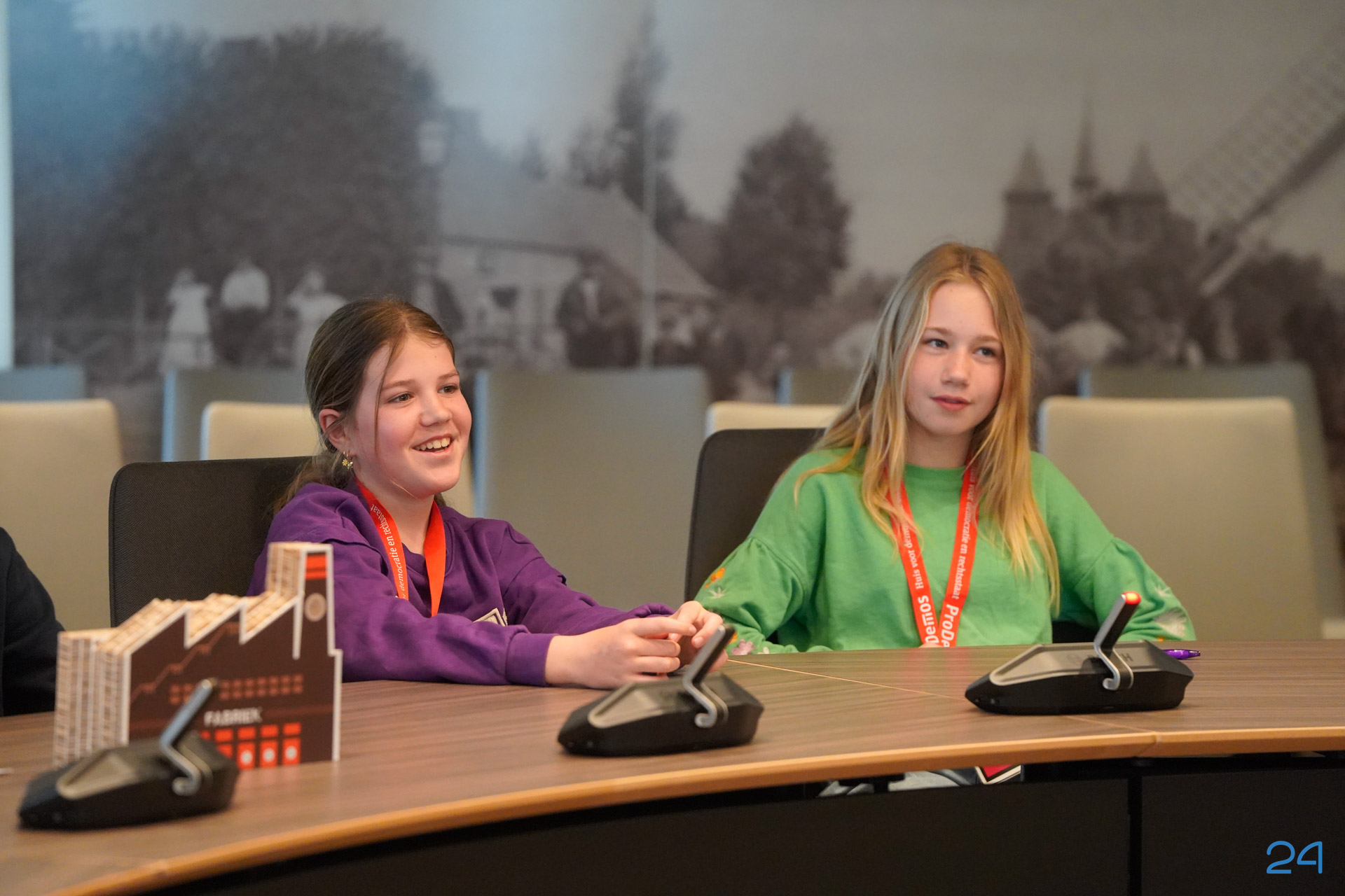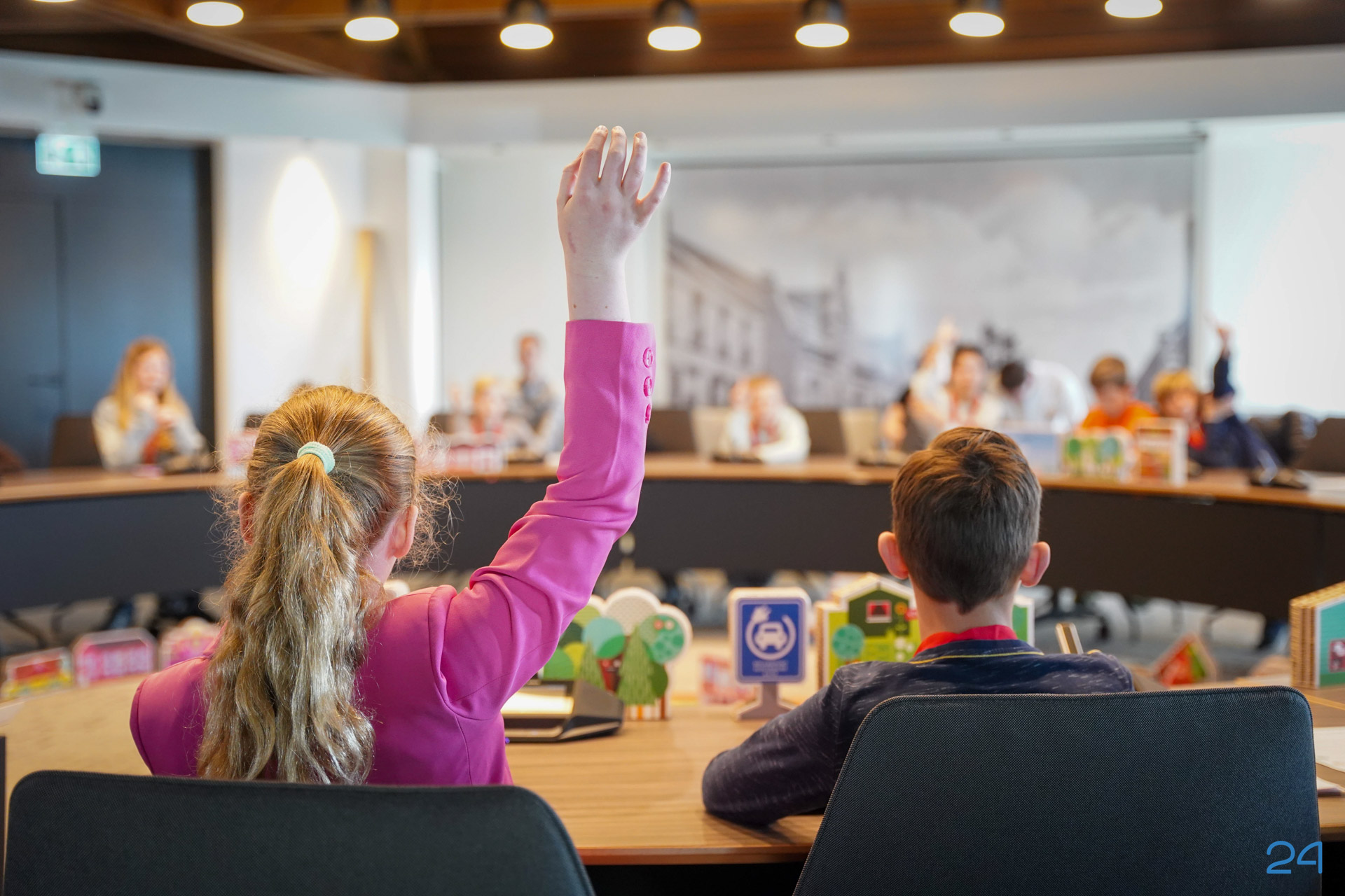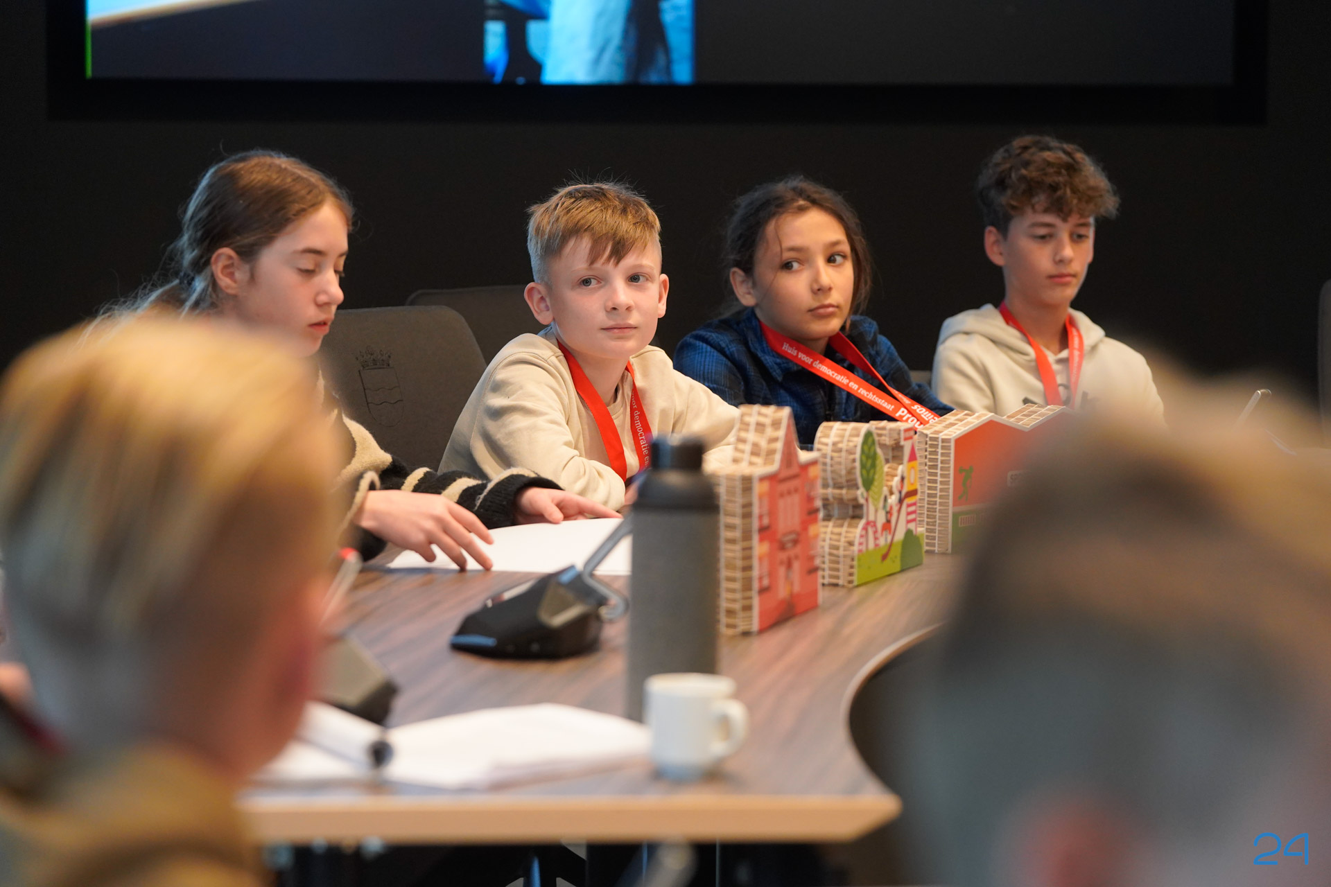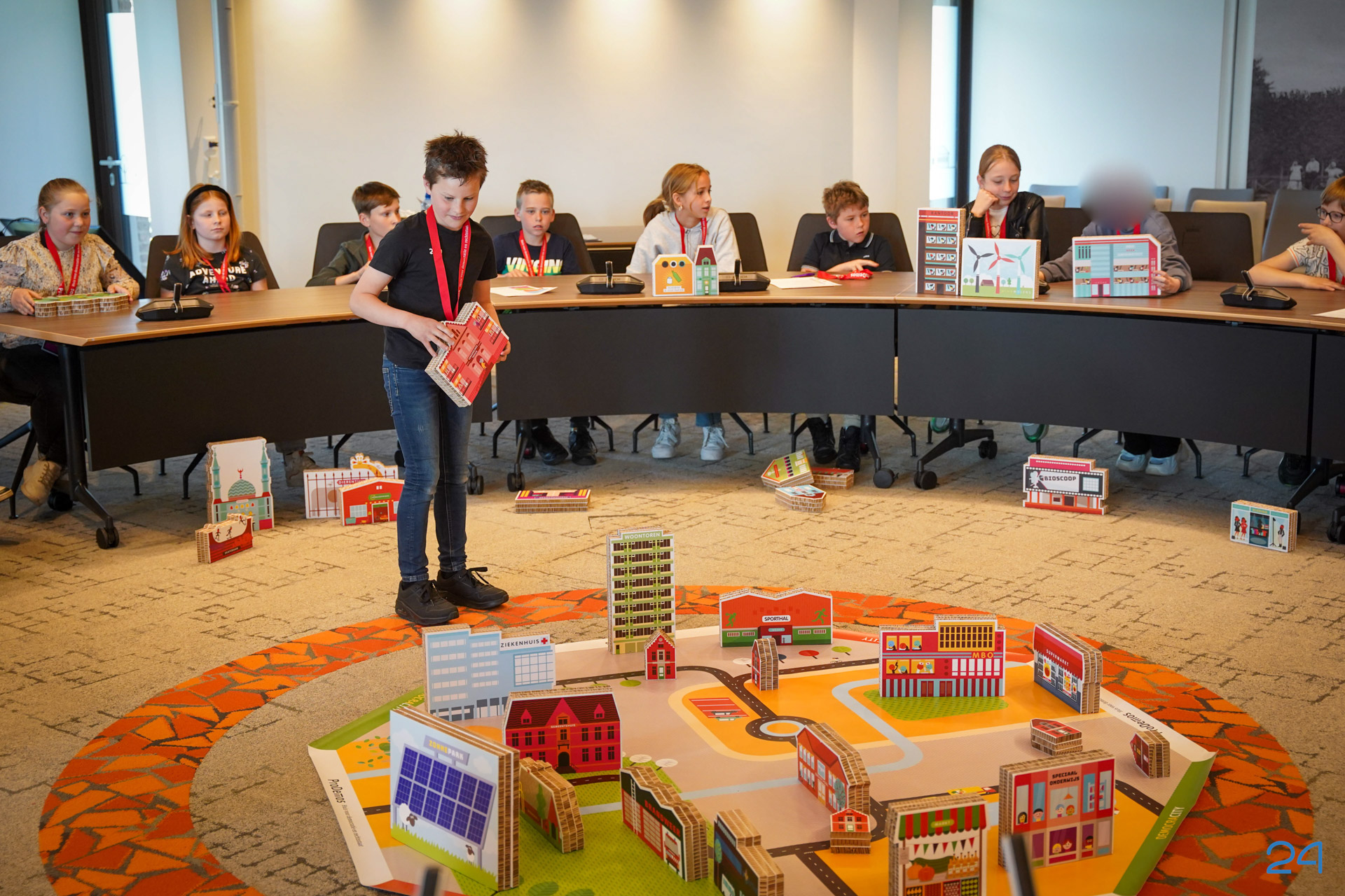 De leerlingen zitten aan de raadsvergadertafel, achter de microfoons. Om hier een beetje aan te wennen zijn we de ochtend gestart met een voorstelrondje. En als tegen twaalven het einde van het spel nadert, is het praten door een microfoon helemaal geen probleem meer. En maar goed ook, want het budget blijkt bijna op te zijn, dus er moet met de andere politieke partijen afgestemd worden welke gebouwen er als laatste een plaats mogen krijgen in de stad. En wil je de andere partijen overtuigen van jouw keuze, dan moet je onderbouwen. Uiteindelijk geeft het tellen van de stemmen de doorslag, en kan de stad afgebouwd worden.