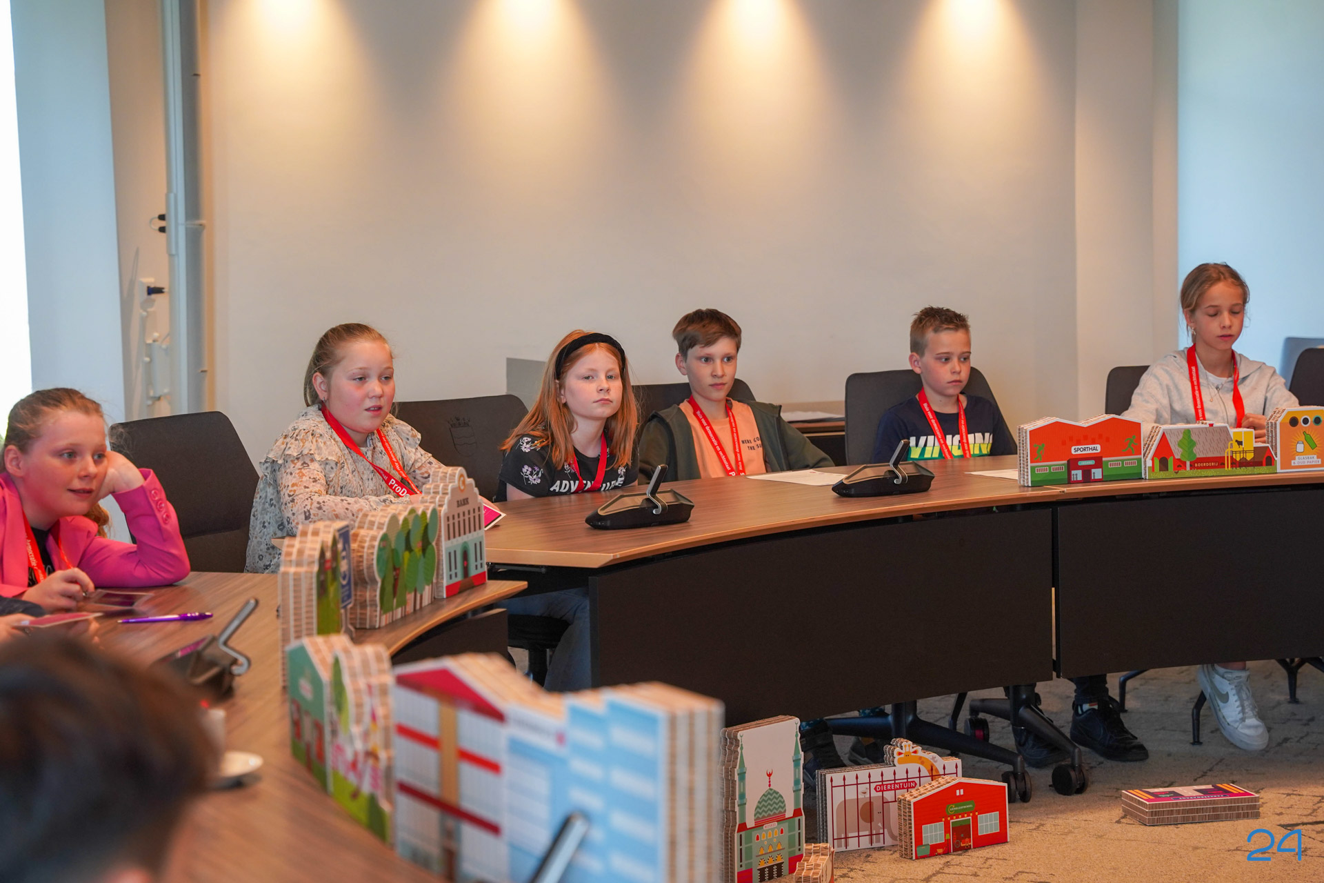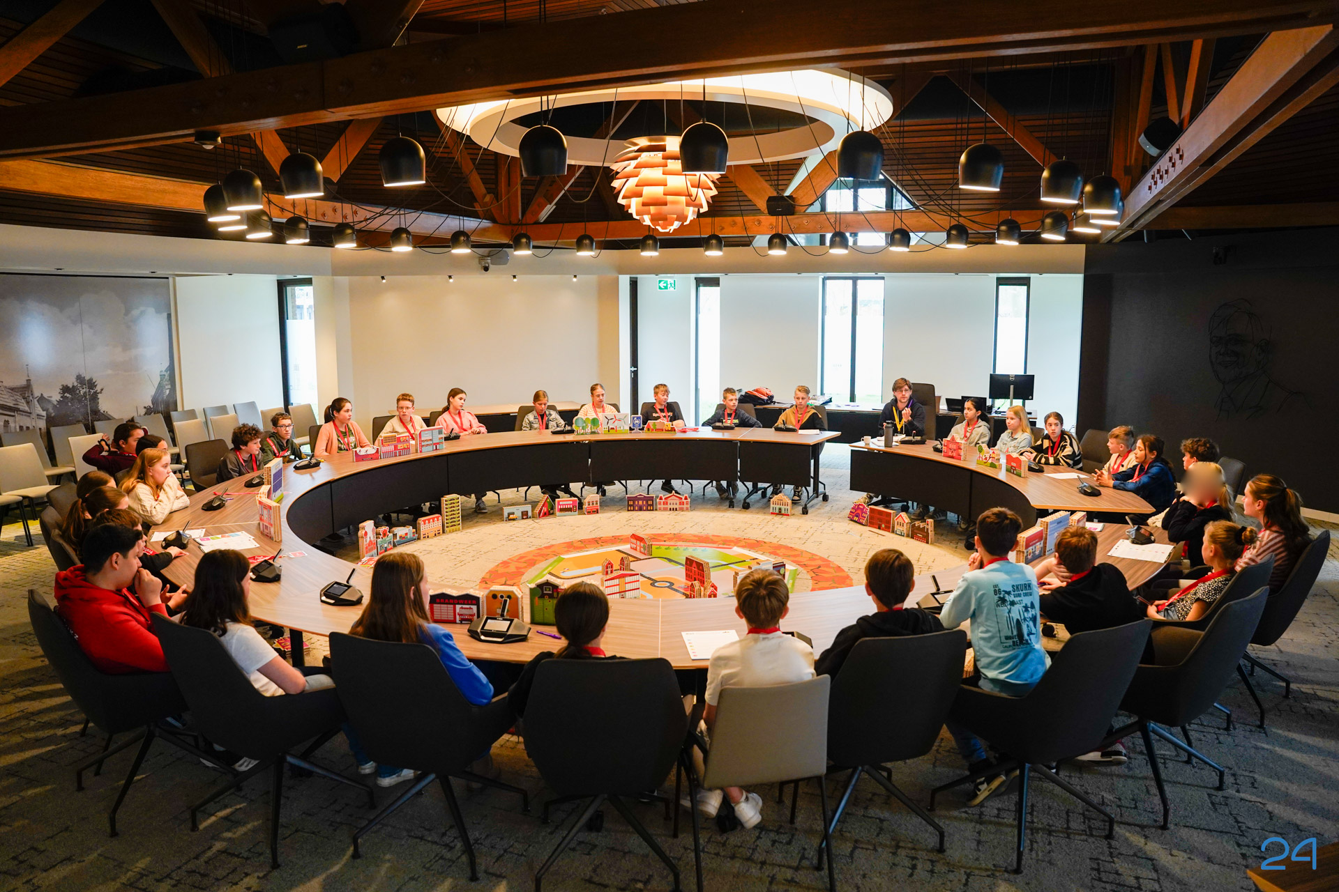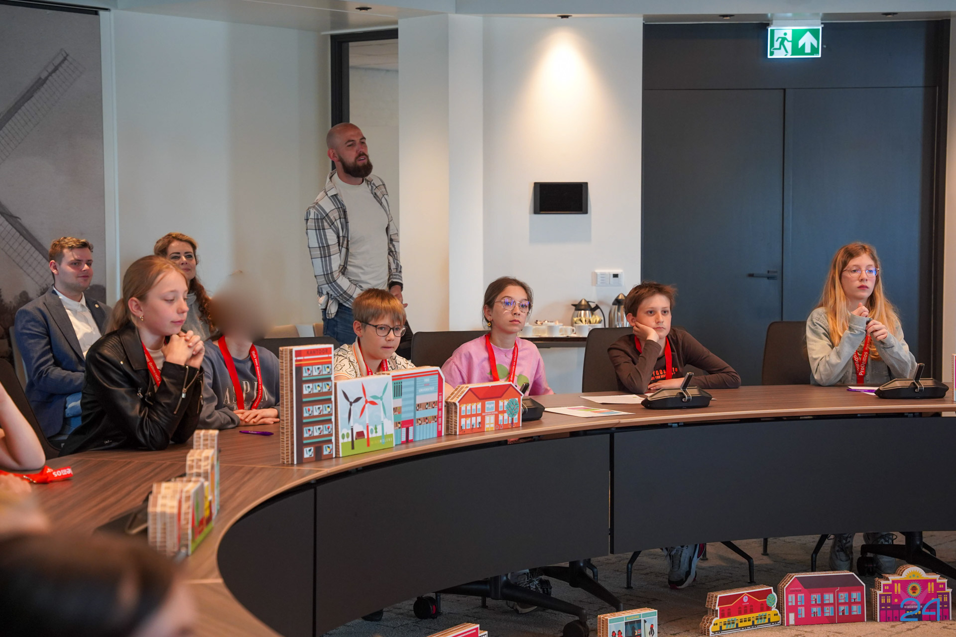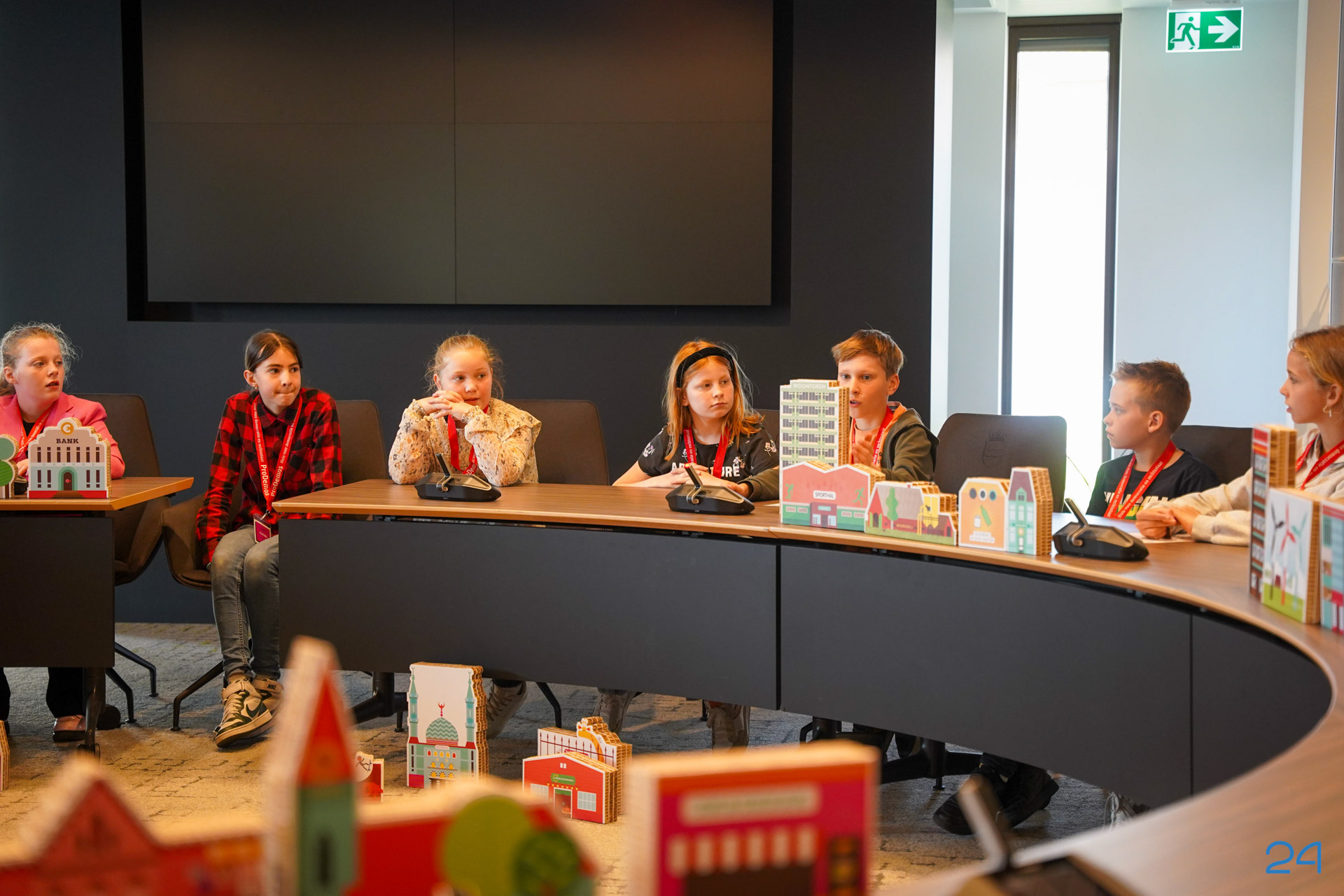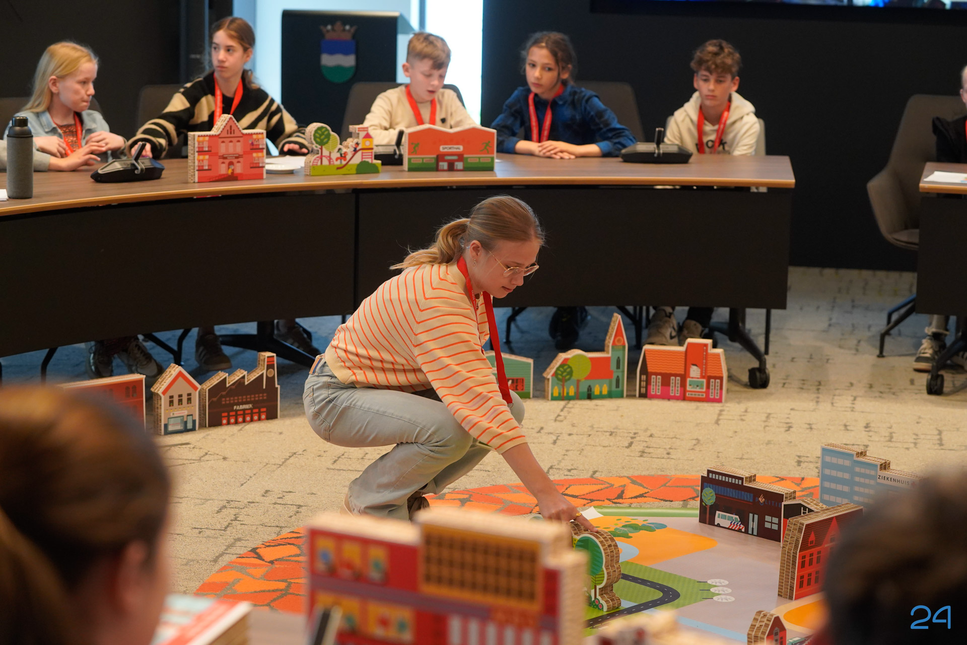 De leerlingen zitten aan de raadsvergadertafel, achter de microfoons. Om hier een beetje aan te wennen zijn we de ochtend gestart met een voorstelrondje. En als tegen twaalven het einde van het spel nadert, is het praten door een microfoon helemaal geen probleem meer. En maar goed ook, want het budget blijkt bijna op te zijn, dus er moet met de andere politieke partijen afgestemd worden welke gebouwen er als laatste een plaats mogen krijgen in de stad. En wil je de andere partijen overtuigen van jouw keuze, dan moet je onderbouwen. Uiteindelijk geeft het tellen van de stemmen de doorslag, en kan de stad afgebouwd worden.