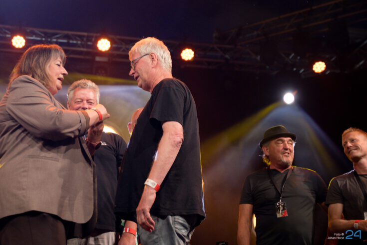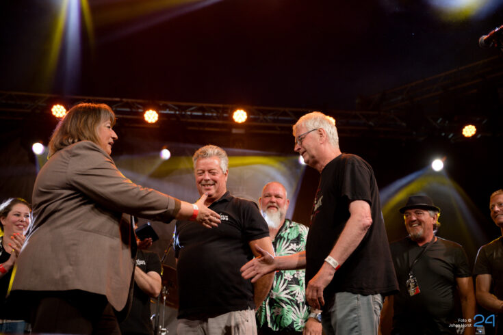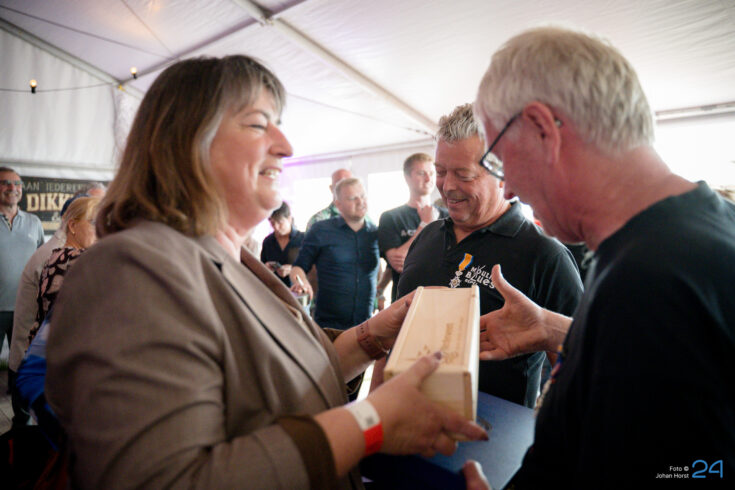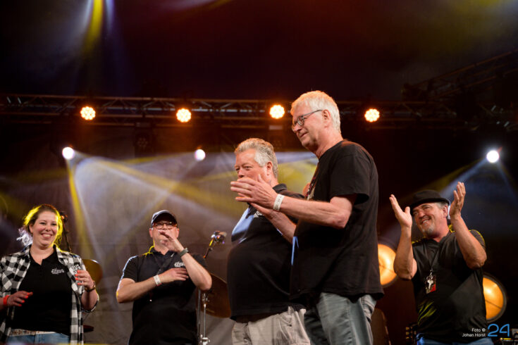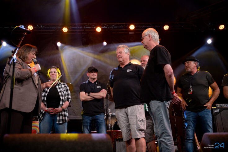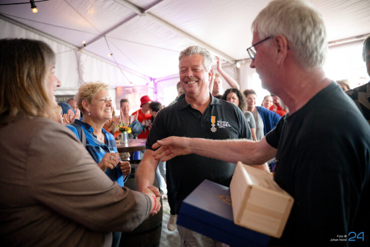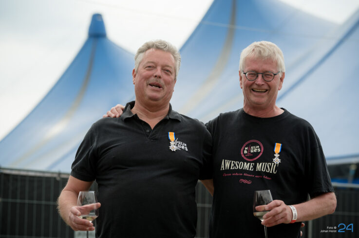 Tijdens de 38e editie van Moulin Blues in Ospel zijn zaterdag 3 mei twee gewaardeerde vrijwilligers letterlijk en figuurlijk in het zonnetje gezet. Ludo van Thuijl uit Ospel en Jo Evers uit Roggel ontvingen uit handen van burgemeester Op de Laak een Koninklijke onderscheiding voor hun jarenlange inzet. Niet veel later kregen ze achter de schermen ook een symbolisch eerbetoon: een zwaard en schild. Daarmee zijn ze, volgens velen, de echte ‘Ridders van de Blues’ geworden.