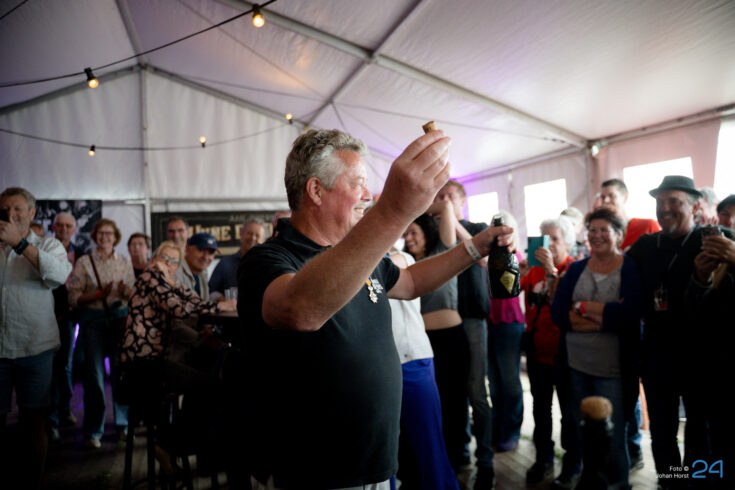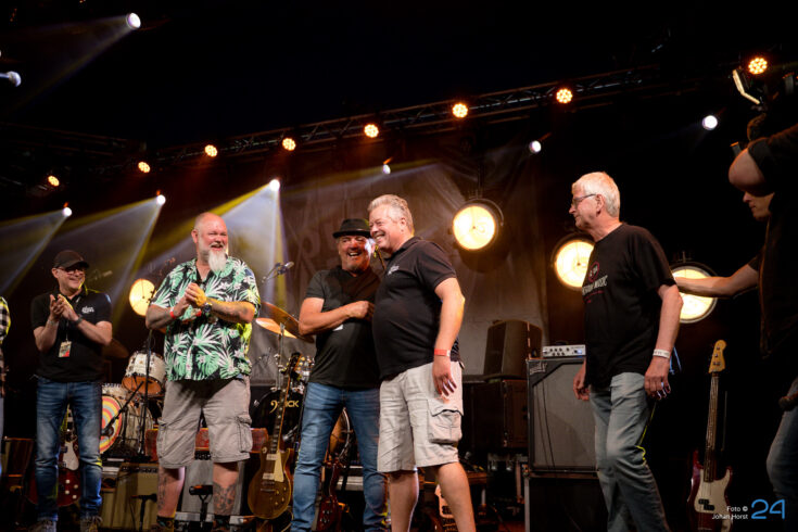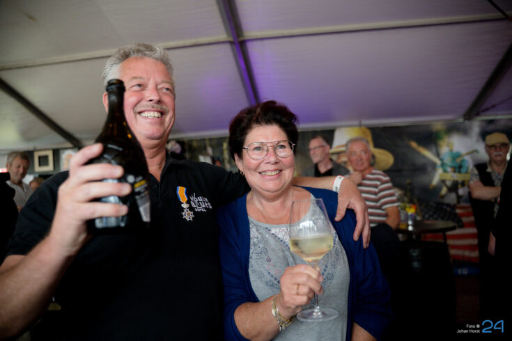 Na de officiële ceremonie ontvingen beide heren uit handen van hun medevrijwilligers een zwaard en schild. Een symbolisch moment, waarmee zij benoemd zijn tot ‘Ridders van de Blues’. Een titel die hen toekomt na jaren van tomeloze inzet, trouw en toewijding.