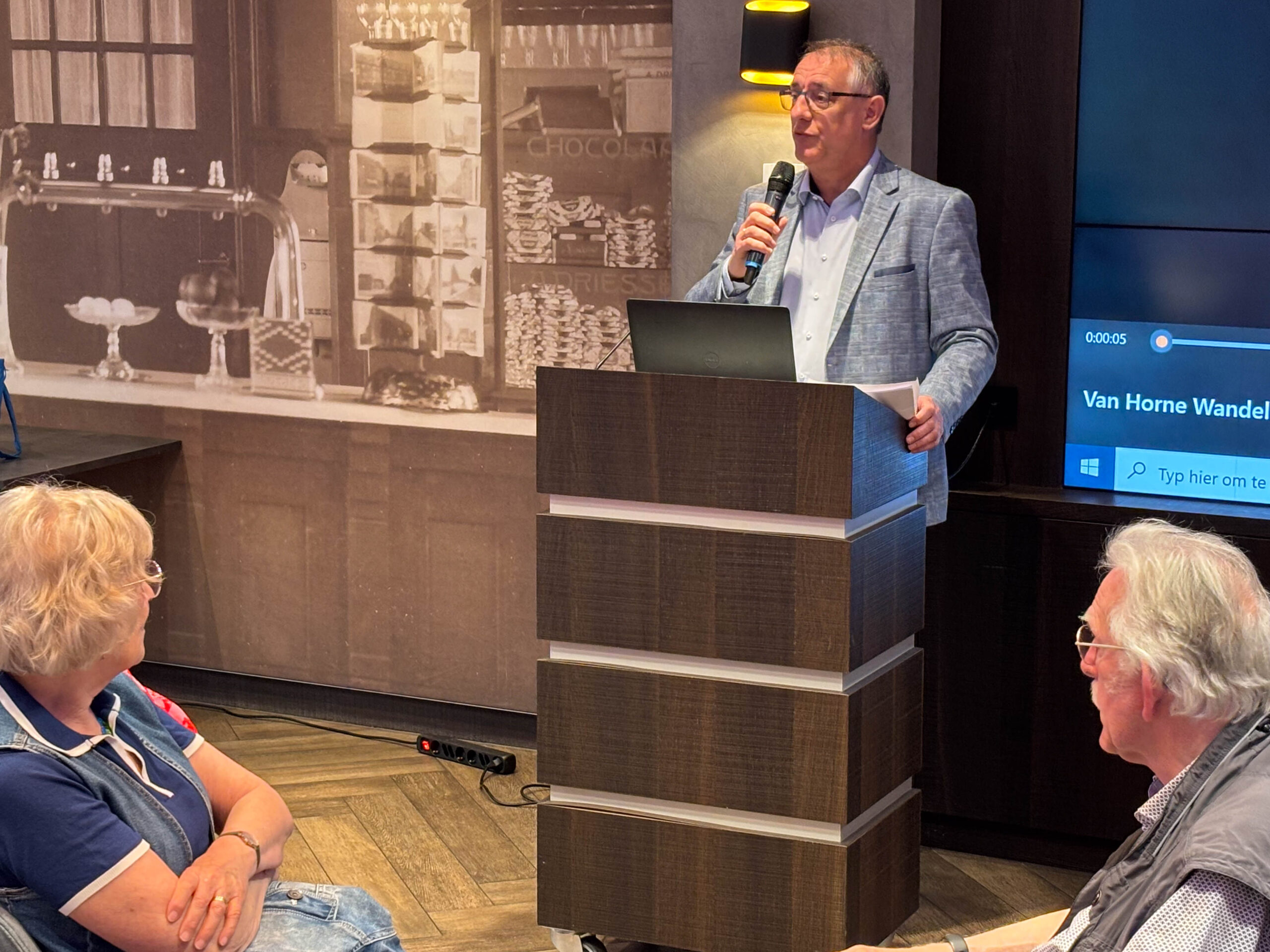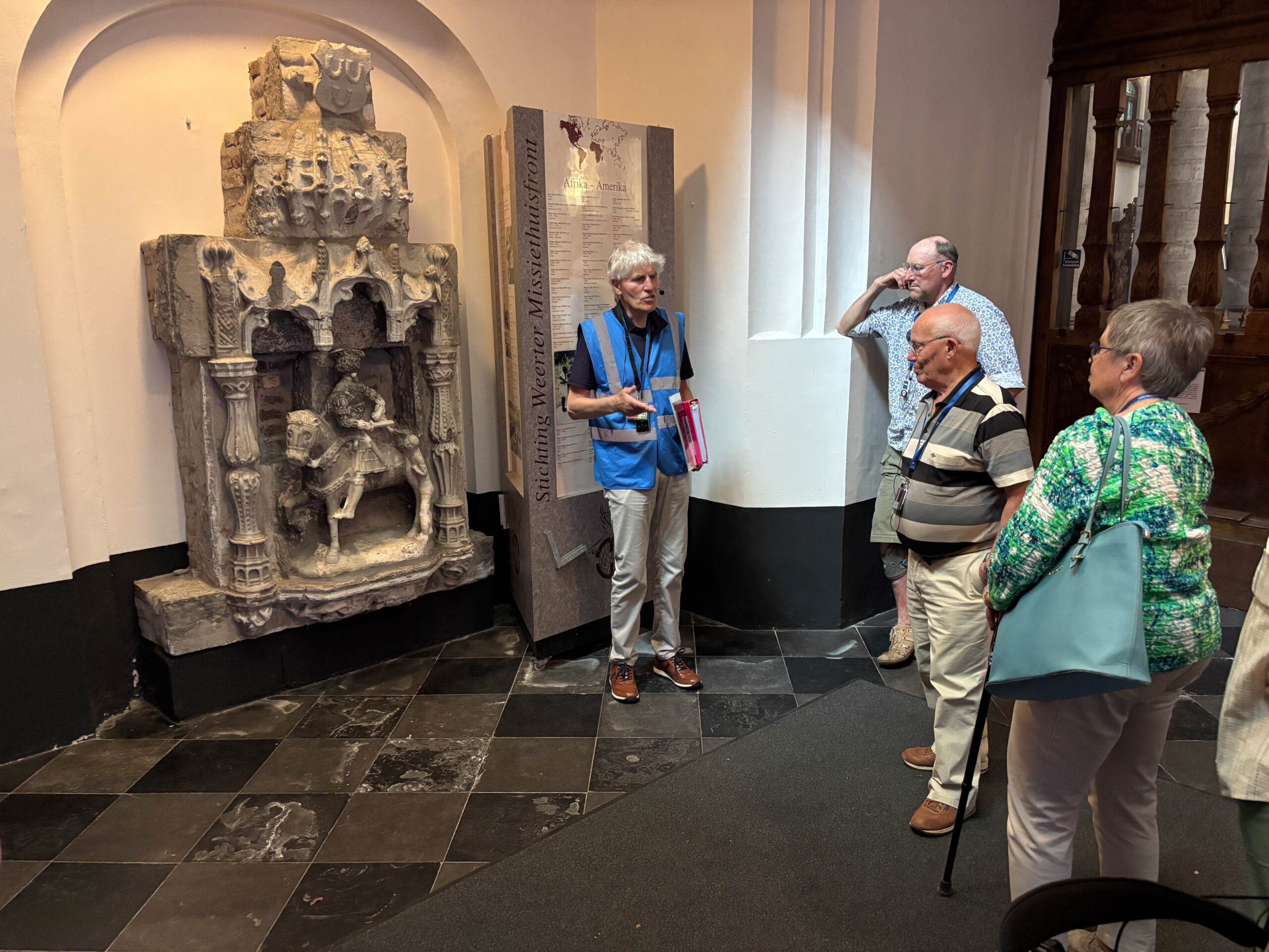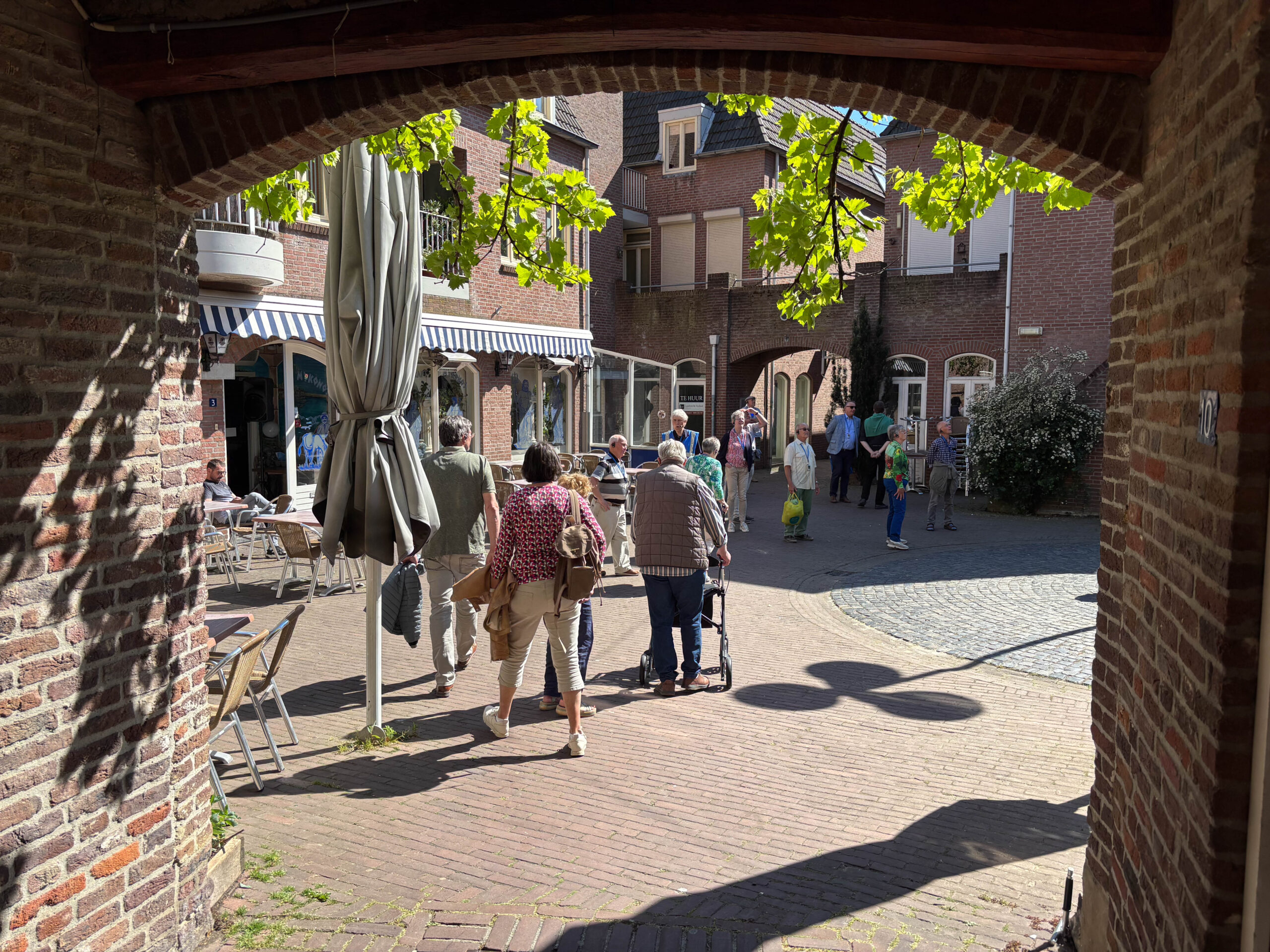 Ondertussen hadden de bekende Weerter stadsgidsen zich bij het gezelschap gevoegd. In drie groepen verdeeld en voorzien van moderne audio-hulpmiddelen volgde voor de deelnemers een cultuurhistorische verkenning van de Weerter binnenstad. En dat hebben de deelnemers geweten: deskundige en enthousiaste gidsen, prachtige en humorvolle verhalen, een stevige tred en toch wel wat meer kilometers dan je in zo’n compacte binnenstad zou verwachten.