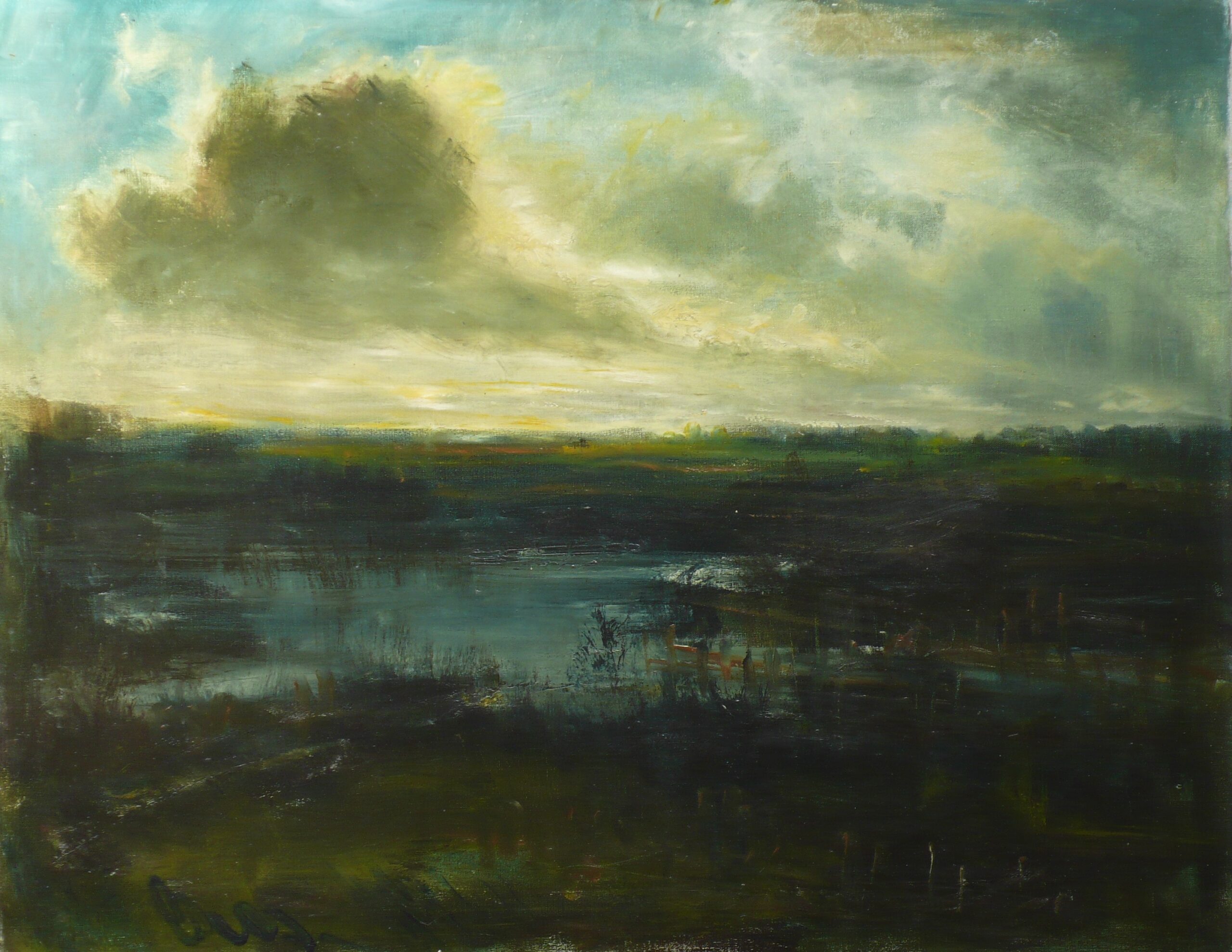 Marinus Bies zet dikwijls, met stevige expressieve penseelstreken, het natte veengebied met hier en daar een boerenwoning, op zijn doeken. Hij werkt vooral uit herinnering en zoekt met de spiegeling van de lucht in het moerassige water naar de sfeer van de Peel zoals hij die in de eerste helft van de 20e eeuw heeft aangetroffen: een verlaten en moeilijk begaanbaar gebied met verraderlijk plassen. Je kon maar beter tussen de karresporen van de verhoogde zandwegen blijven.