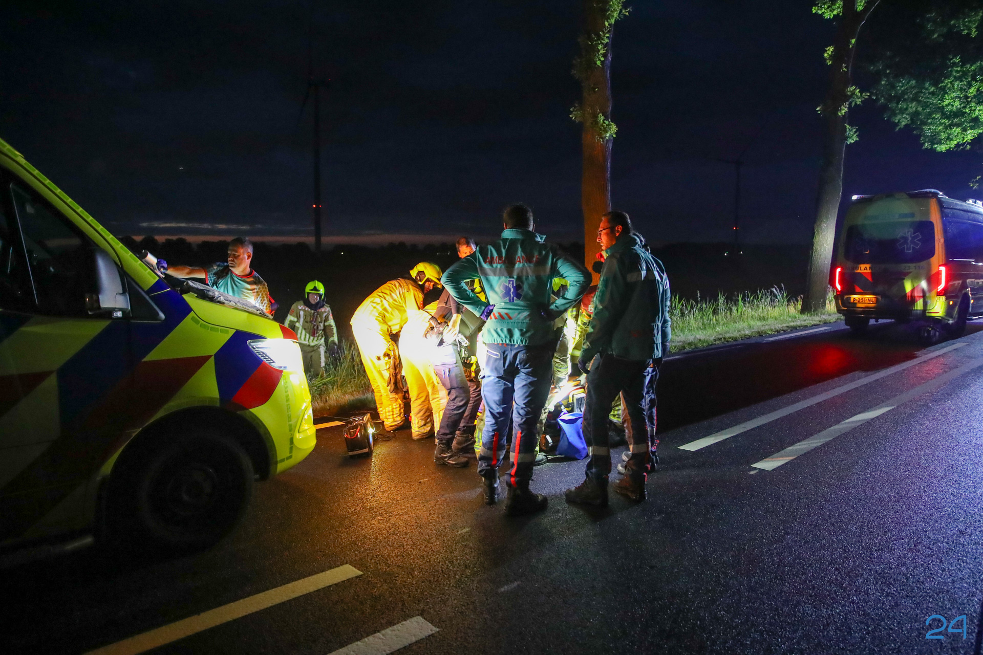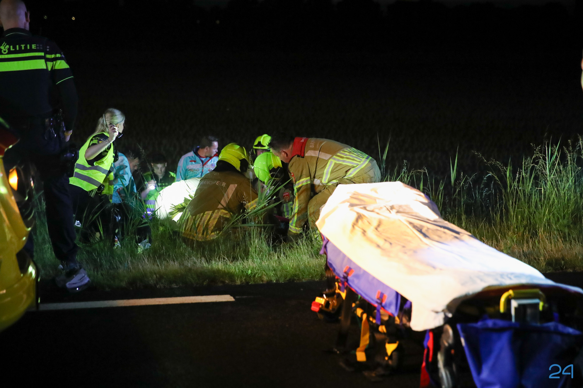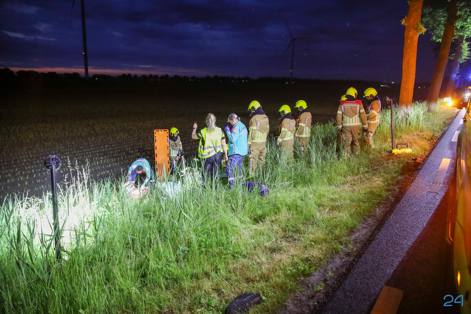 Hulpdiensten, waaronder twee ambulances, de brandweer en de politie, waren snel ter plaatse. Het slachtoffer is met hulp van de brandweer uit de sloot gehaald en met spoed naar het ziekenhuis gebracht.