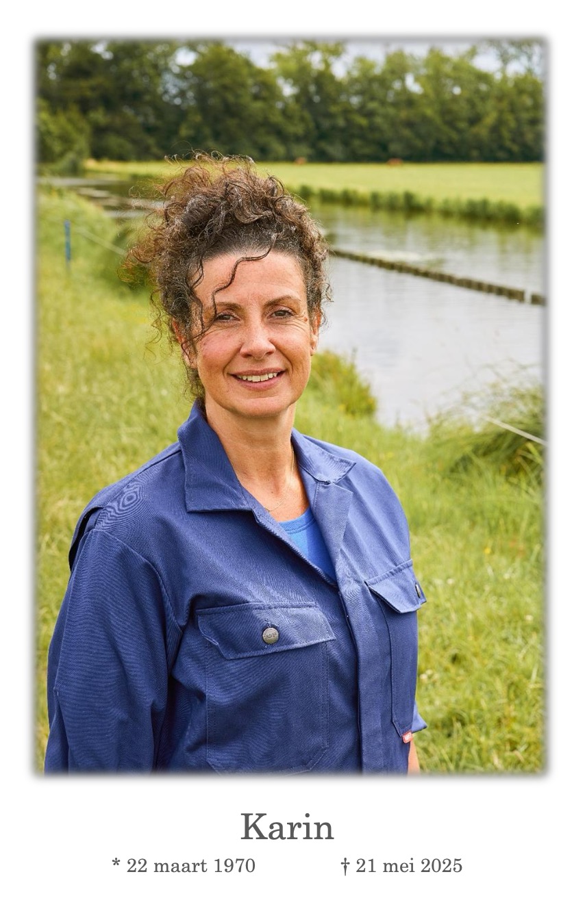 8. Onze oprechte deelneming bij het overlijden van Karin. Veel te jong! We wensen jullie allen heel veel sterkte bij dit zware verlies. Mogen alle fijne herinneringen jullie immense verdriet mettertijd een beetje verzachten…