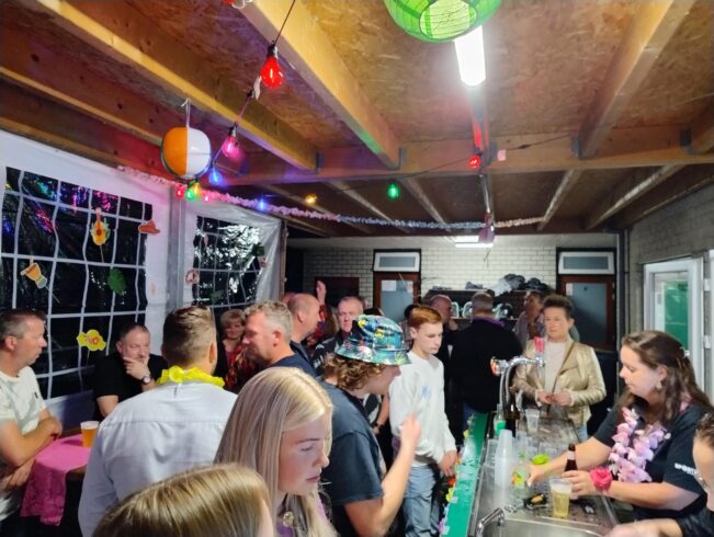 Na het sportieve programma was het tijd voor ontspanning. De BBQ ging aan, de drankjes stonden klaar en de feestavond kon beginnen. Vanaf 20.00 uur stroomde het sportpark verder vol met tropisch geklede bezoekers. DJ Bas Coolen bracht de tropische sfeer naar een hoger niveau met zomerse beats en dansbare hits. De seizoensafsluiting was weer een groot succes. Tot komend seizoen!