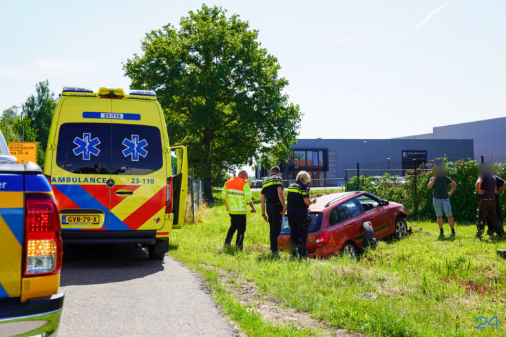 Hoe het kon gebeuren dat de automobilist naast de weg belandde is niet bekend. Politie en een ambulance kwamen ter plaatse. De bestuurder is door de medewerkers van de ambulance ter plaatse nagekeken en vervolgens meegenomen naar het ziekenhuis.
