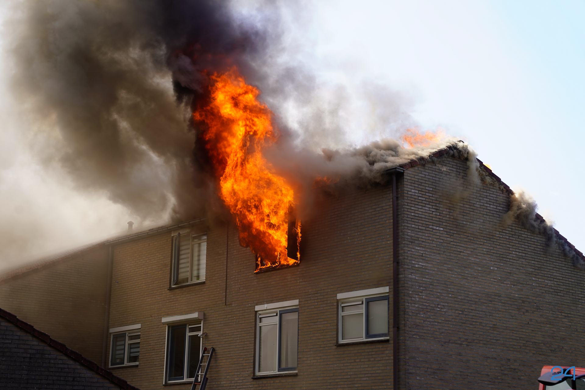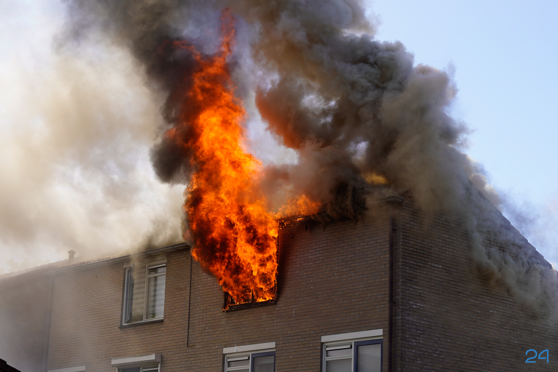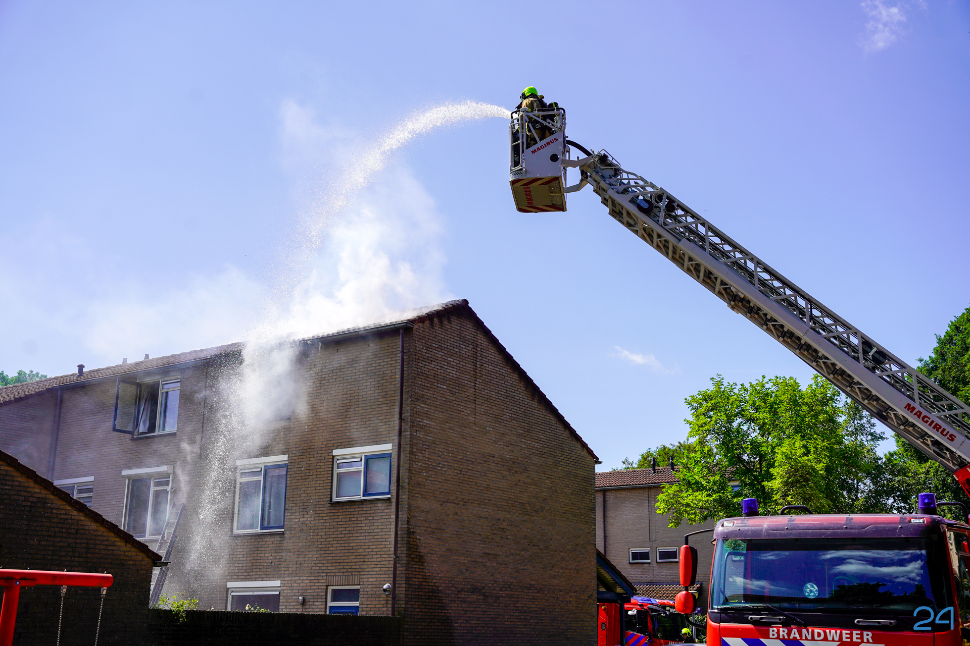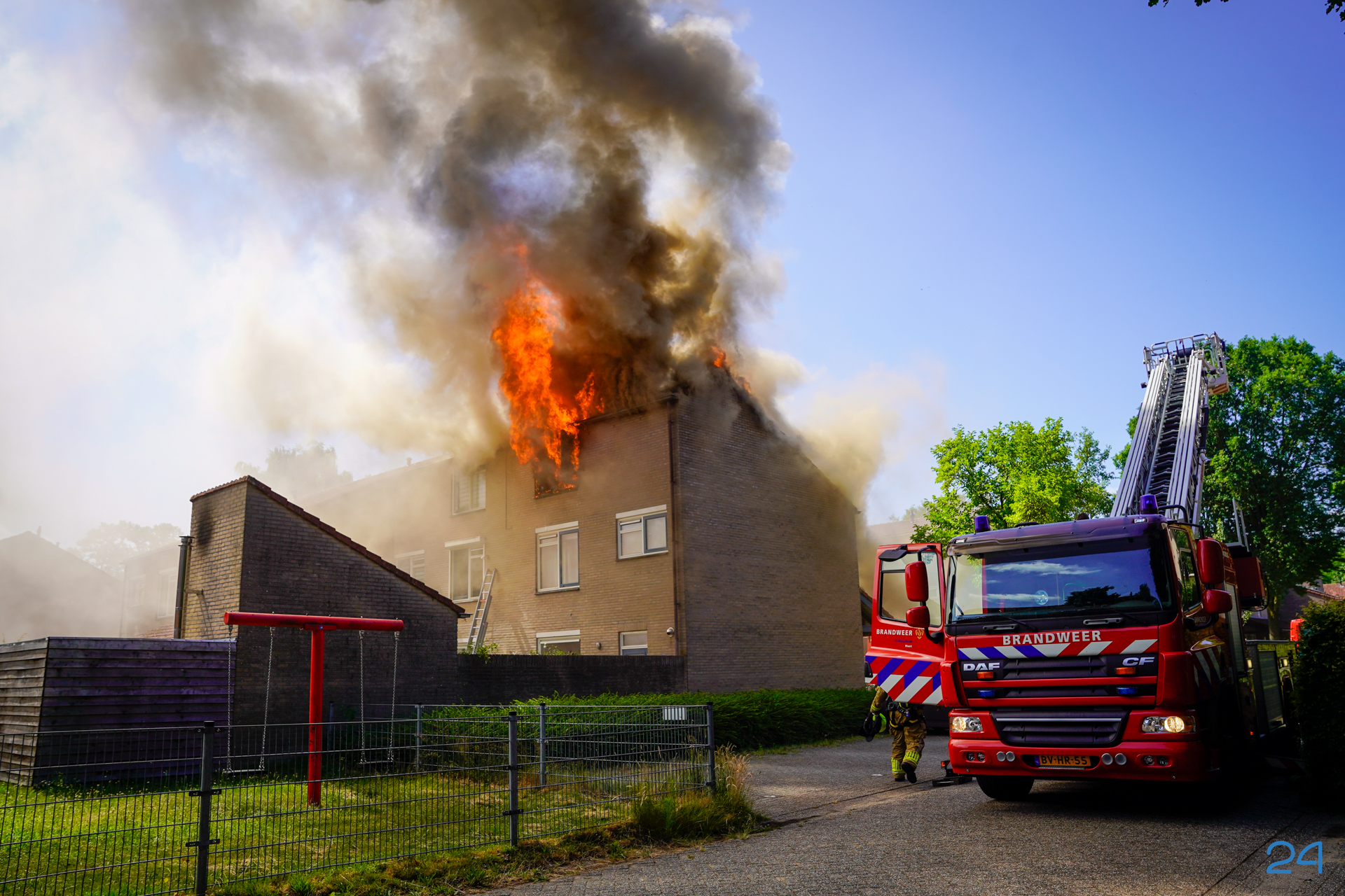 De eerste melding van de brand kwam binnen rond 11.25 uur. Al snel werd opgeschaald van een ‘middelbrand naar ‘grote brand’. De vlammen sloegen metershoog uit het raam van de bovenverdieping en het dak.