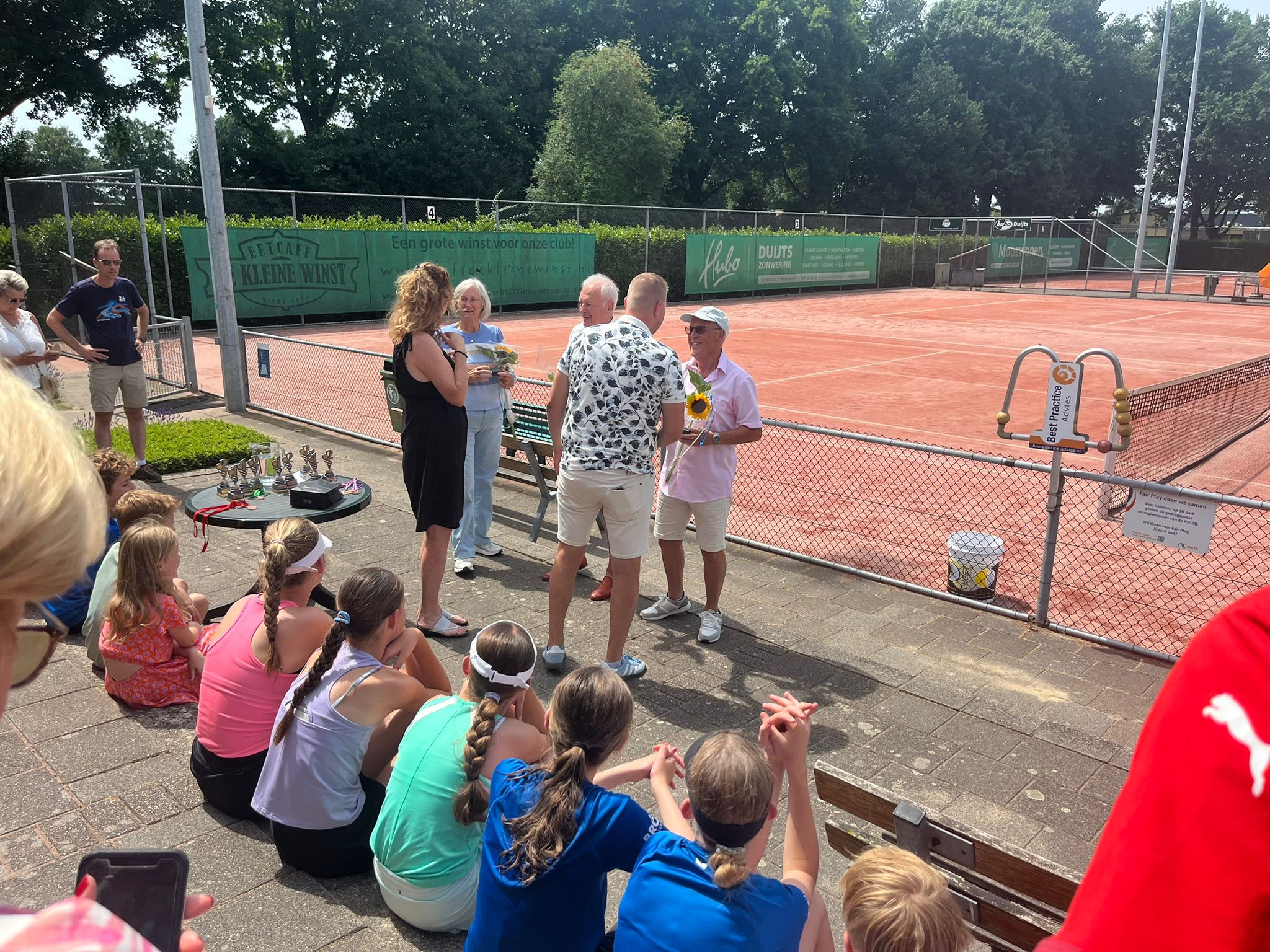 “Het bestuur is trots op onze jubilarissen en hoopt dat ze nog vele jaren blijven tennissen.”