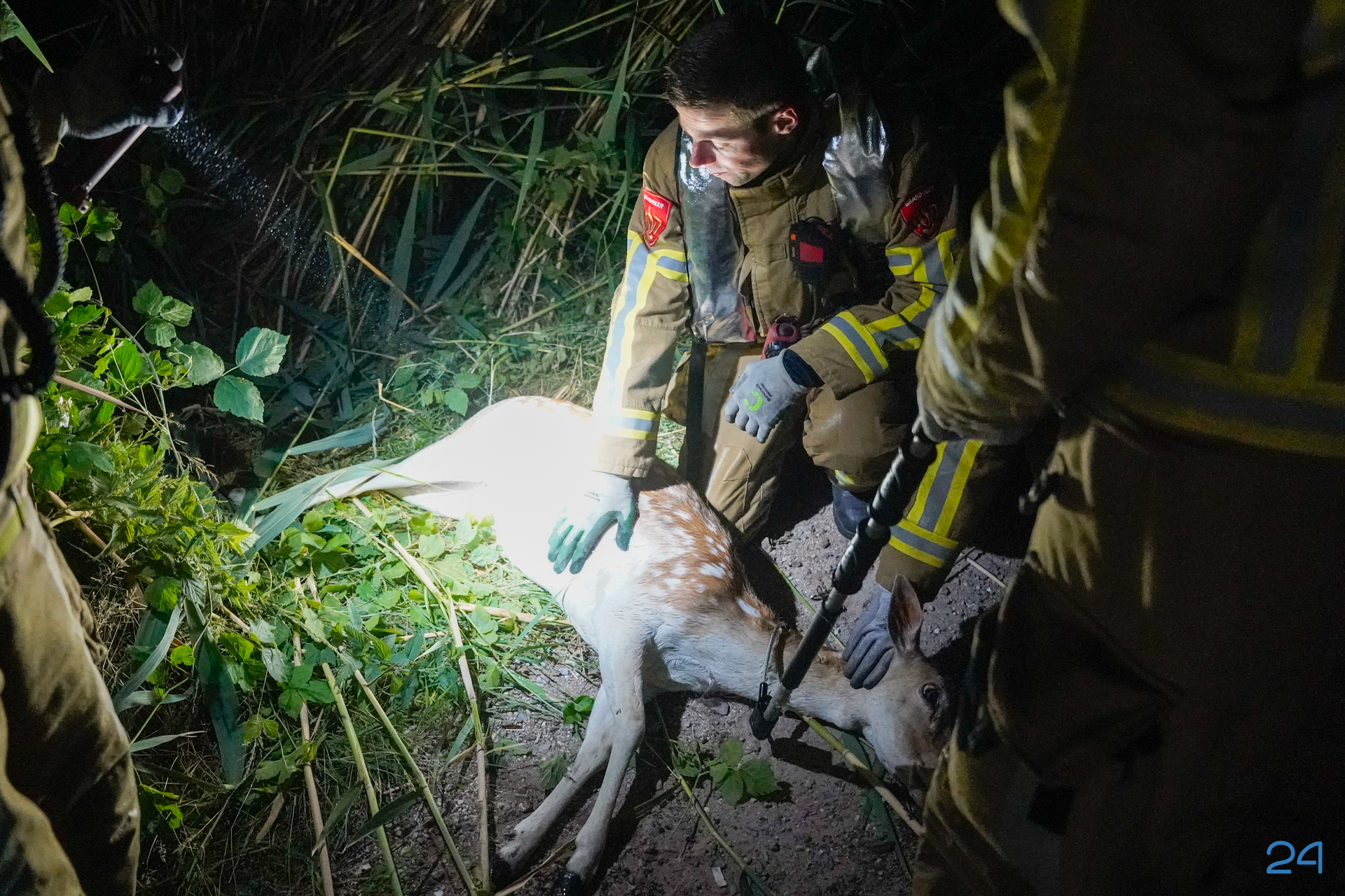 De brandweer heeft donderdagavond een damhert gered dat in de Noordervaart in de problemen was geraakt. Passanten aan de Hoeven in Nederweert-Eind zagen het dier worstelend zwemmen en sloegen alarm.