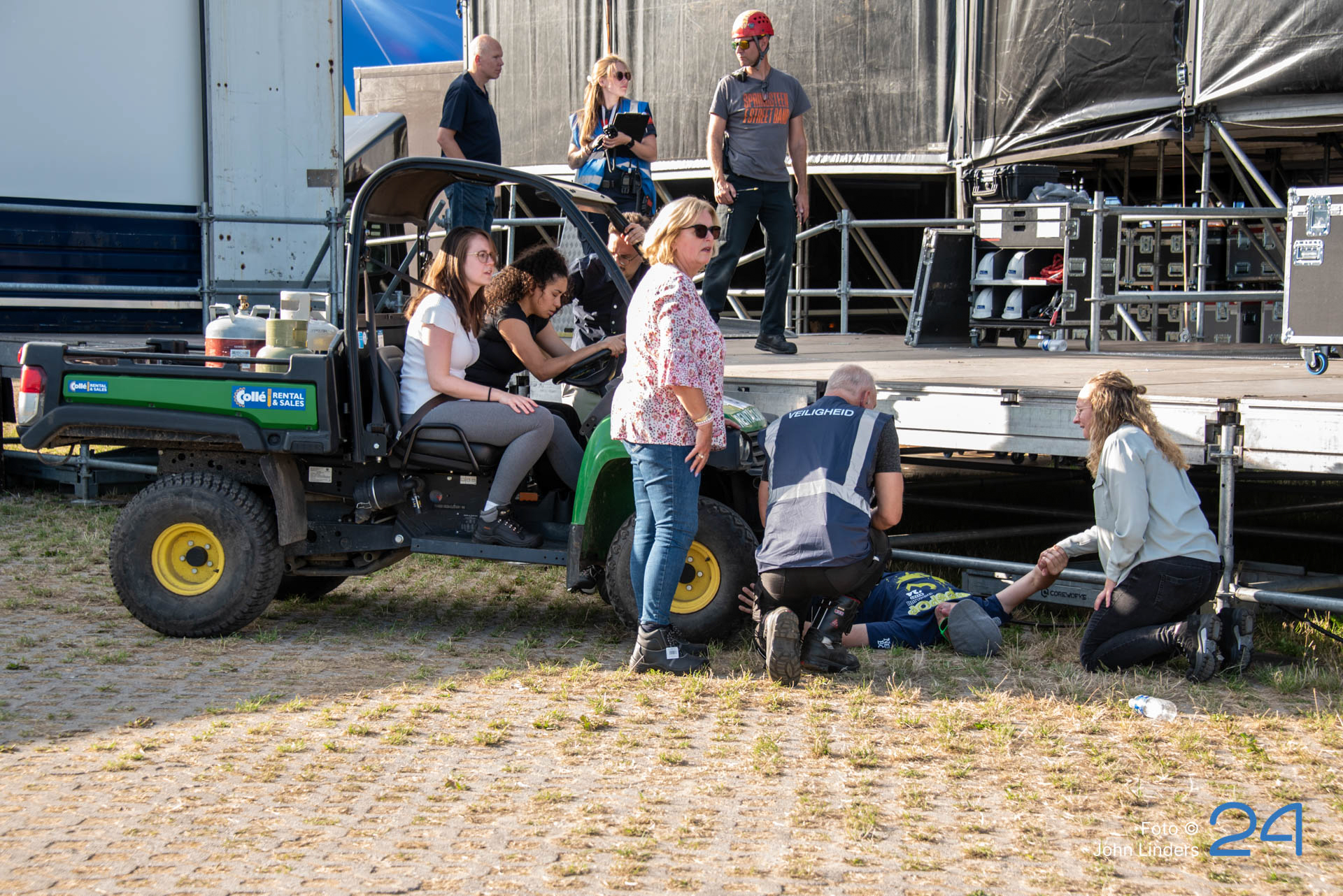 Gelukkig was dus geen sprake van een échte calamiteit. Een persoon was onwel geworden boven in de nok van het hoofdpodium. De persoon werd na de redding gereanimeerd. Onder het hoofdpodium was brand ontstaan bij de elektrische installatie. Tijdens de tumult heeft een gator backstage een vrijwilliger aangereden.