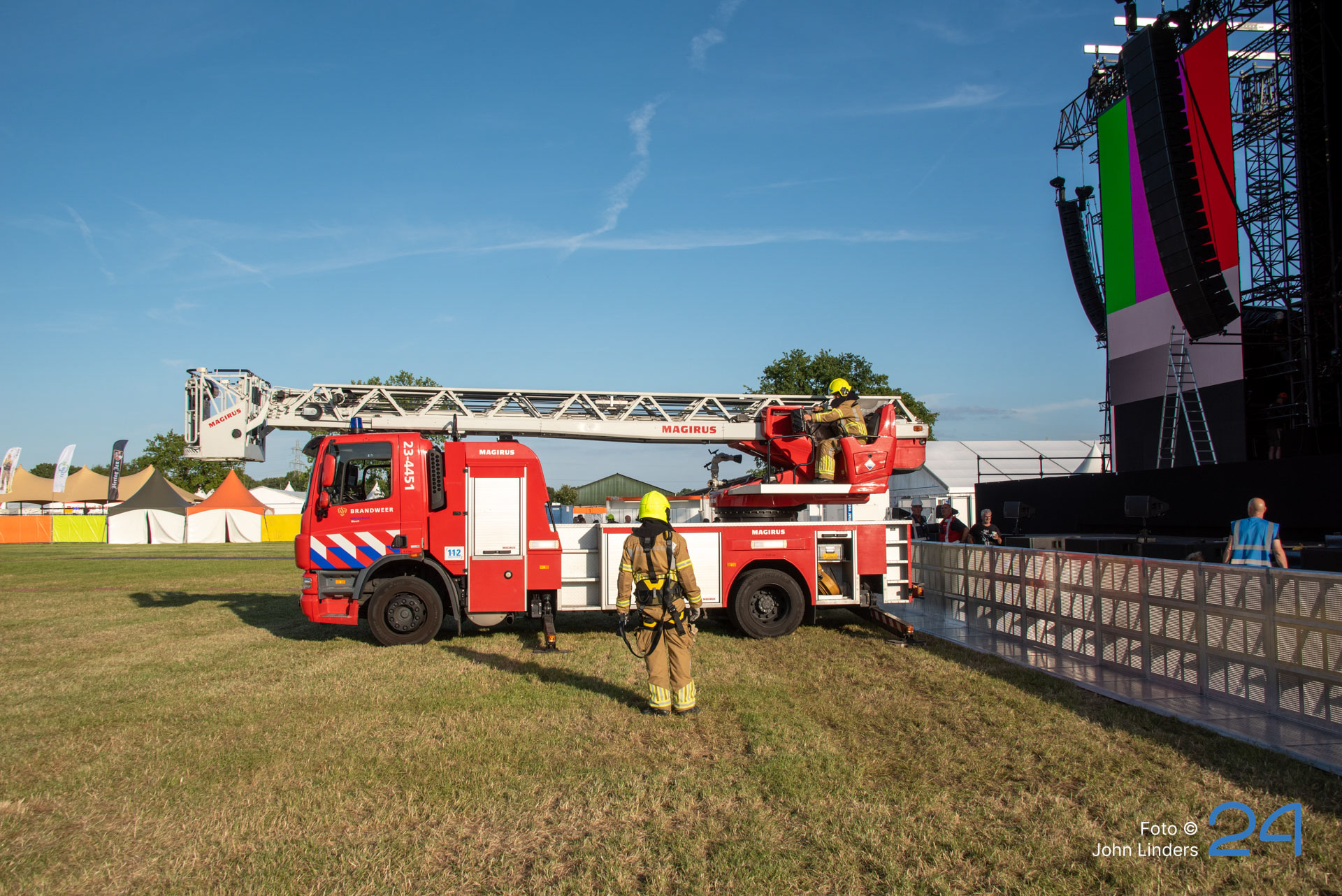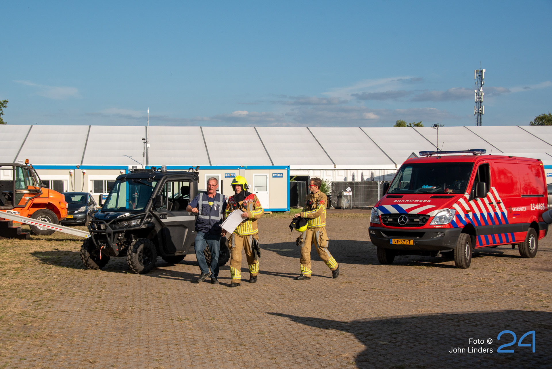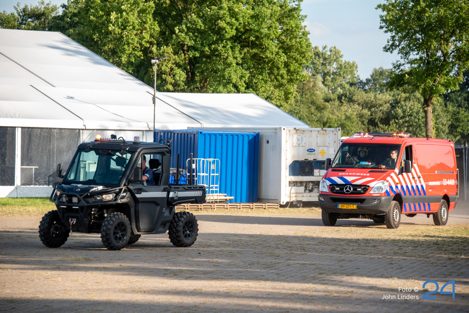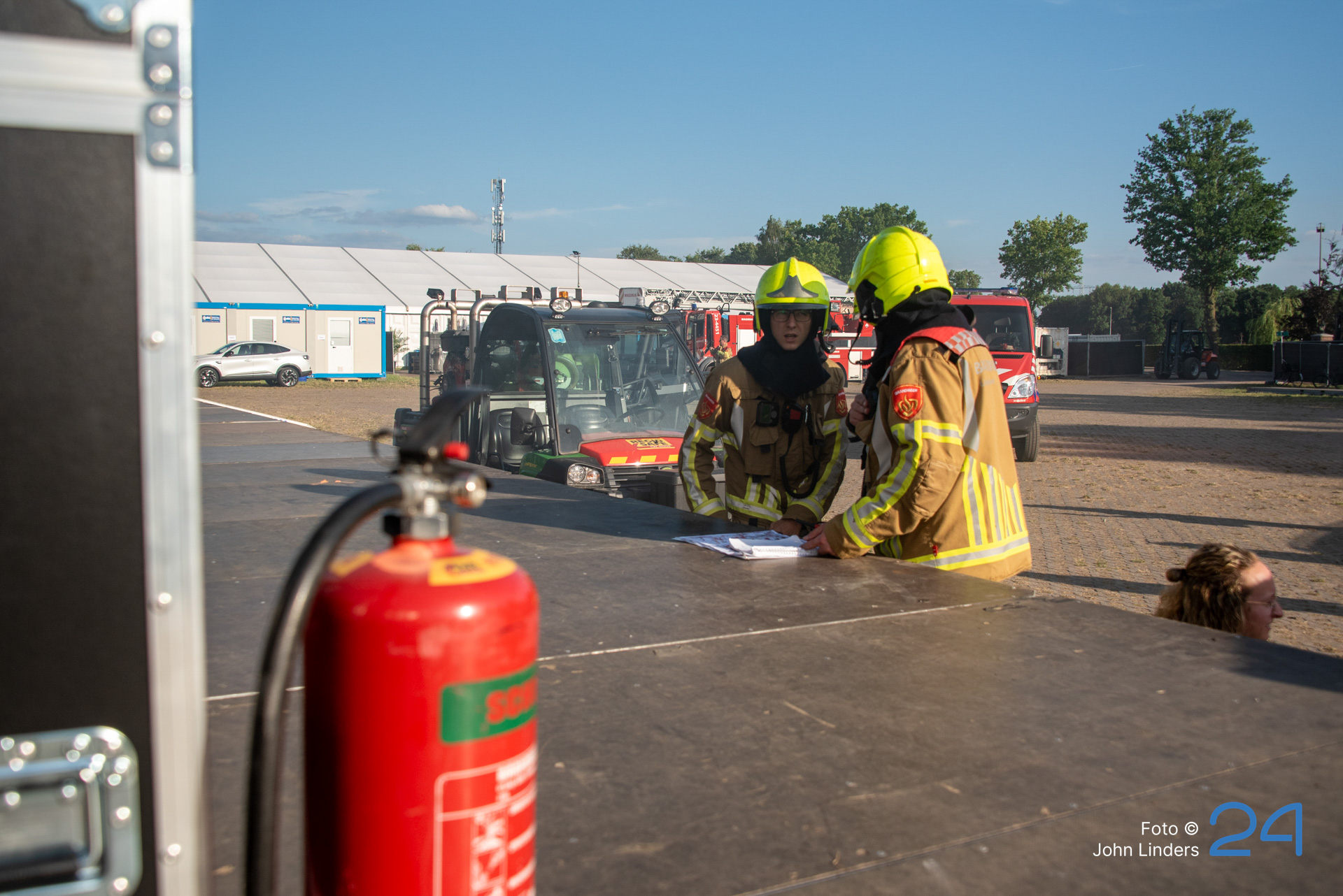 Onder andere burgemeester Vlecken kwam een kijkje nemen tijdens de oefening. De brandweer kwam met diverse voertuigen ter plaatse. Komende vrijdag gaat Bospop 2025 van start.