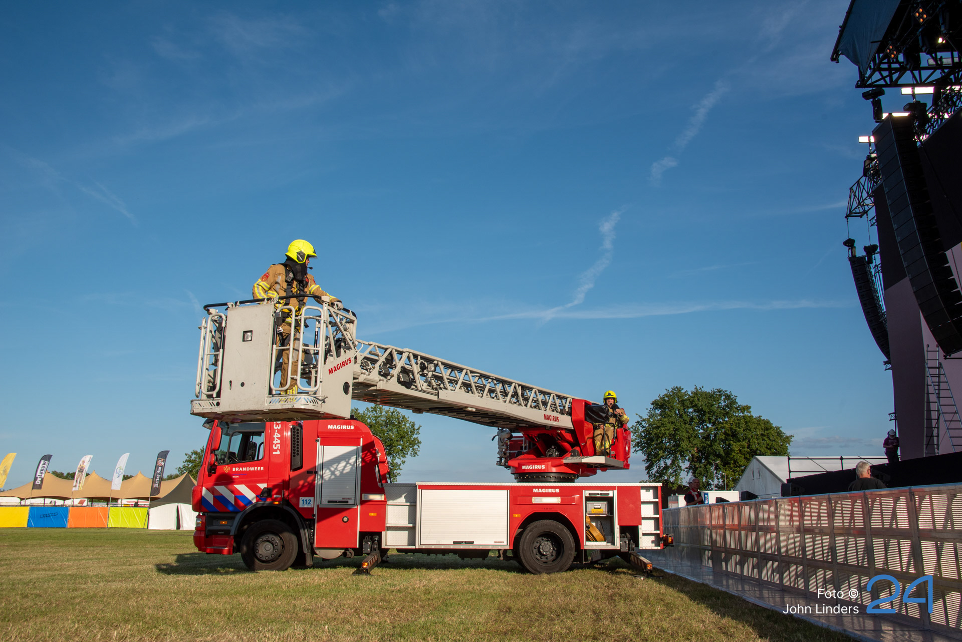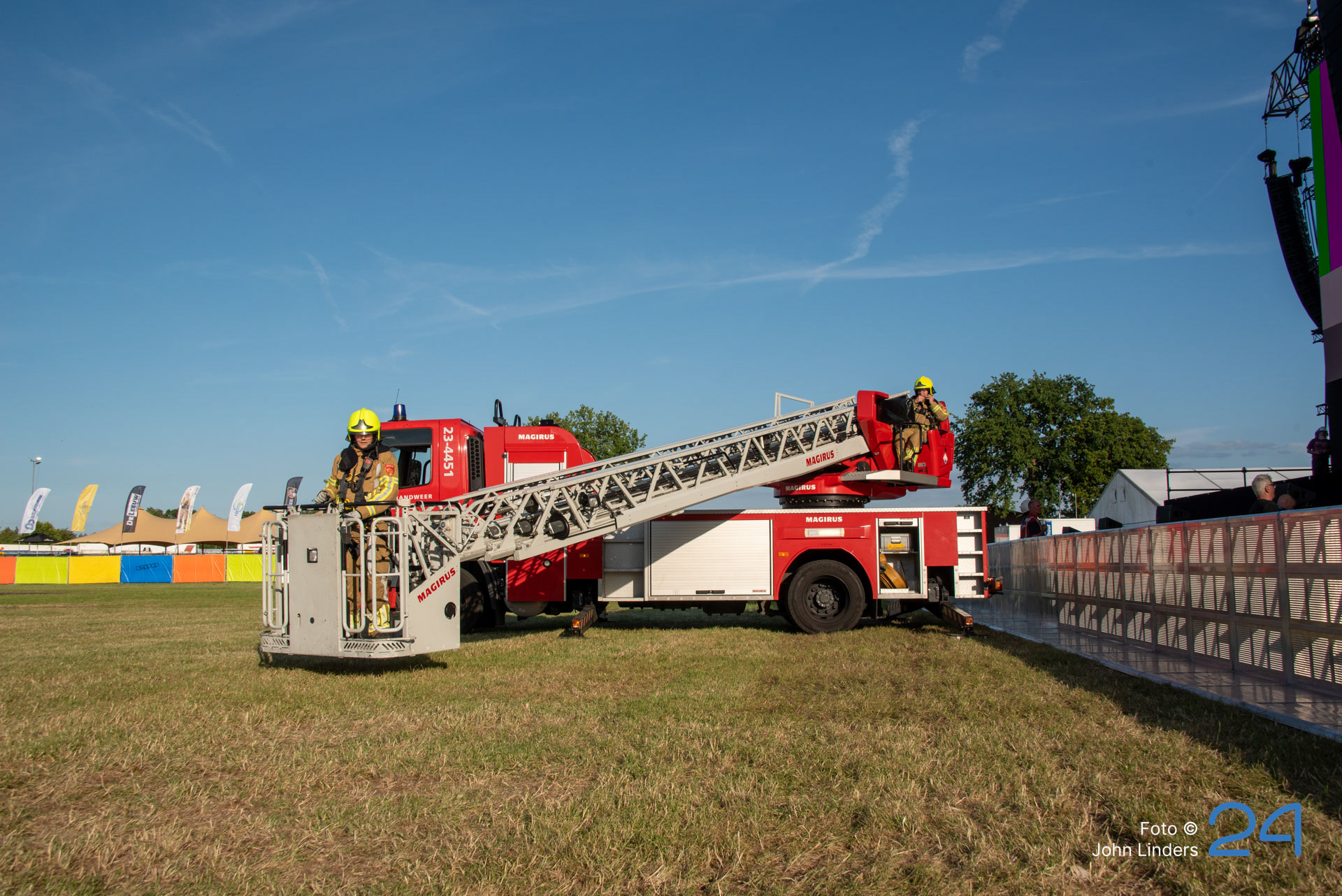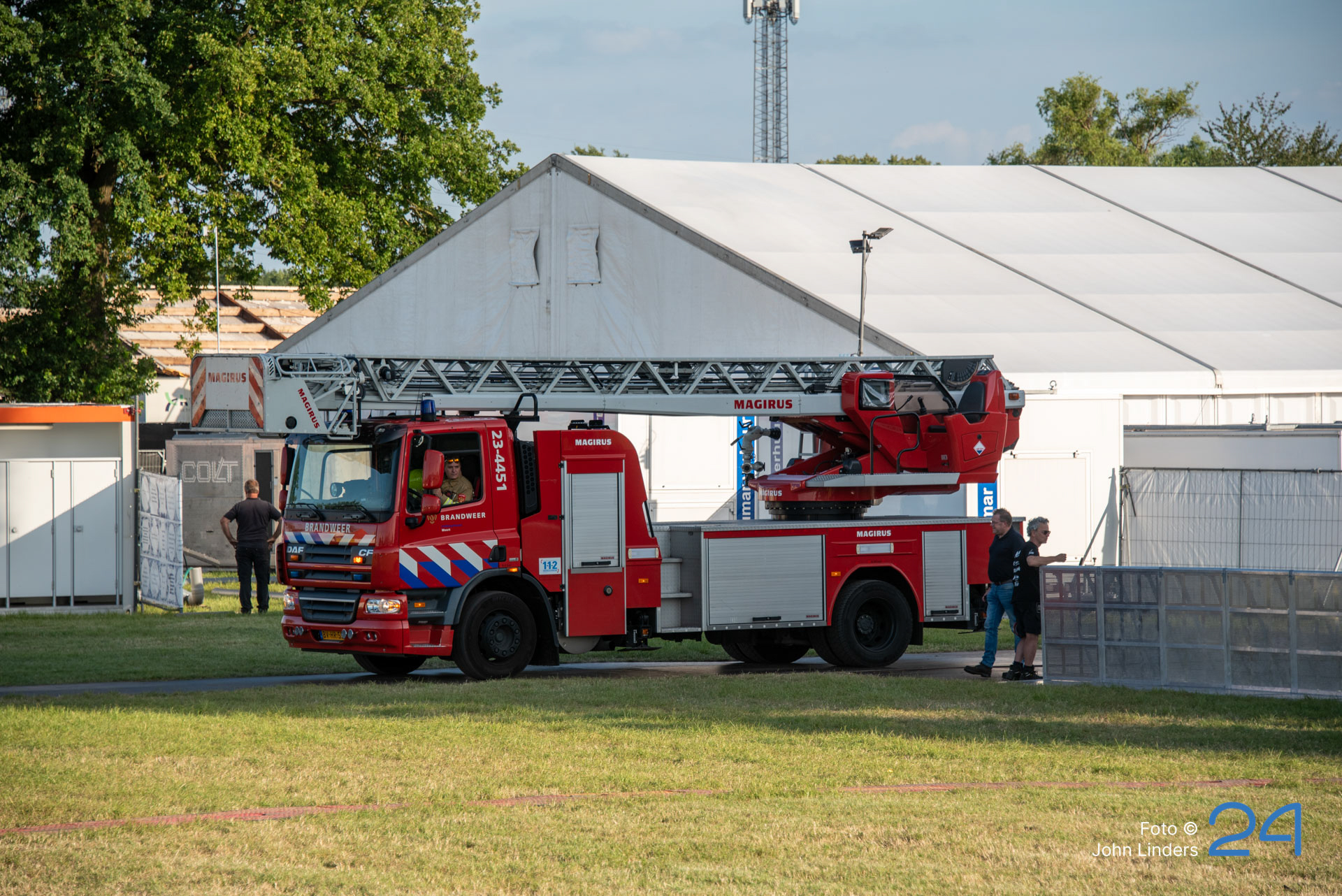 Onder andere burgemeester Vlecken kwam een kijkje nemen tijdens de oefening. De brandweer kwam met diverse voertuigen ter plaatse. Komende vrijdag gaat Bospop 2025 van start.