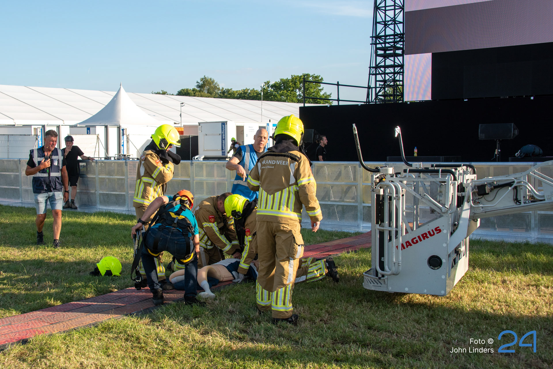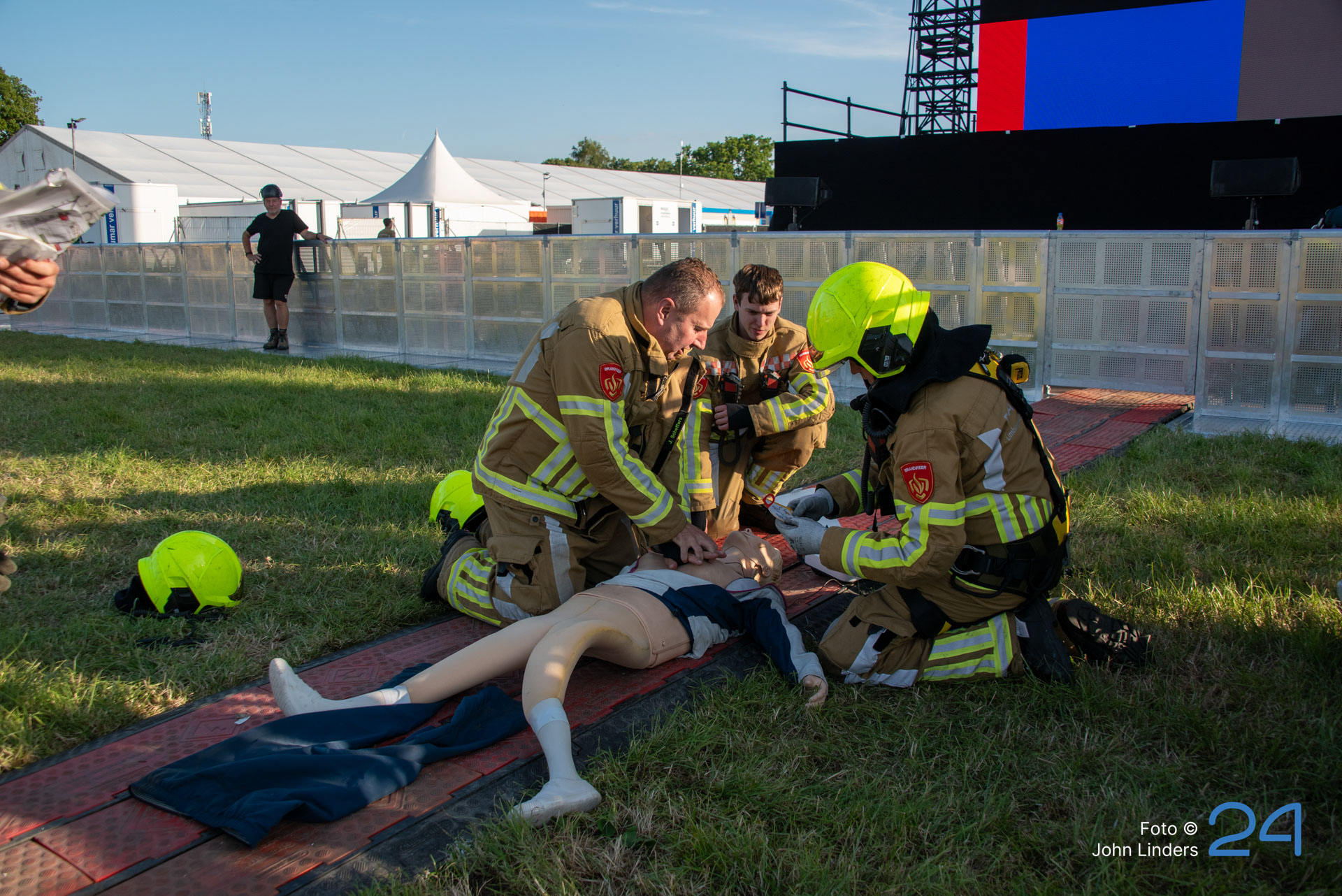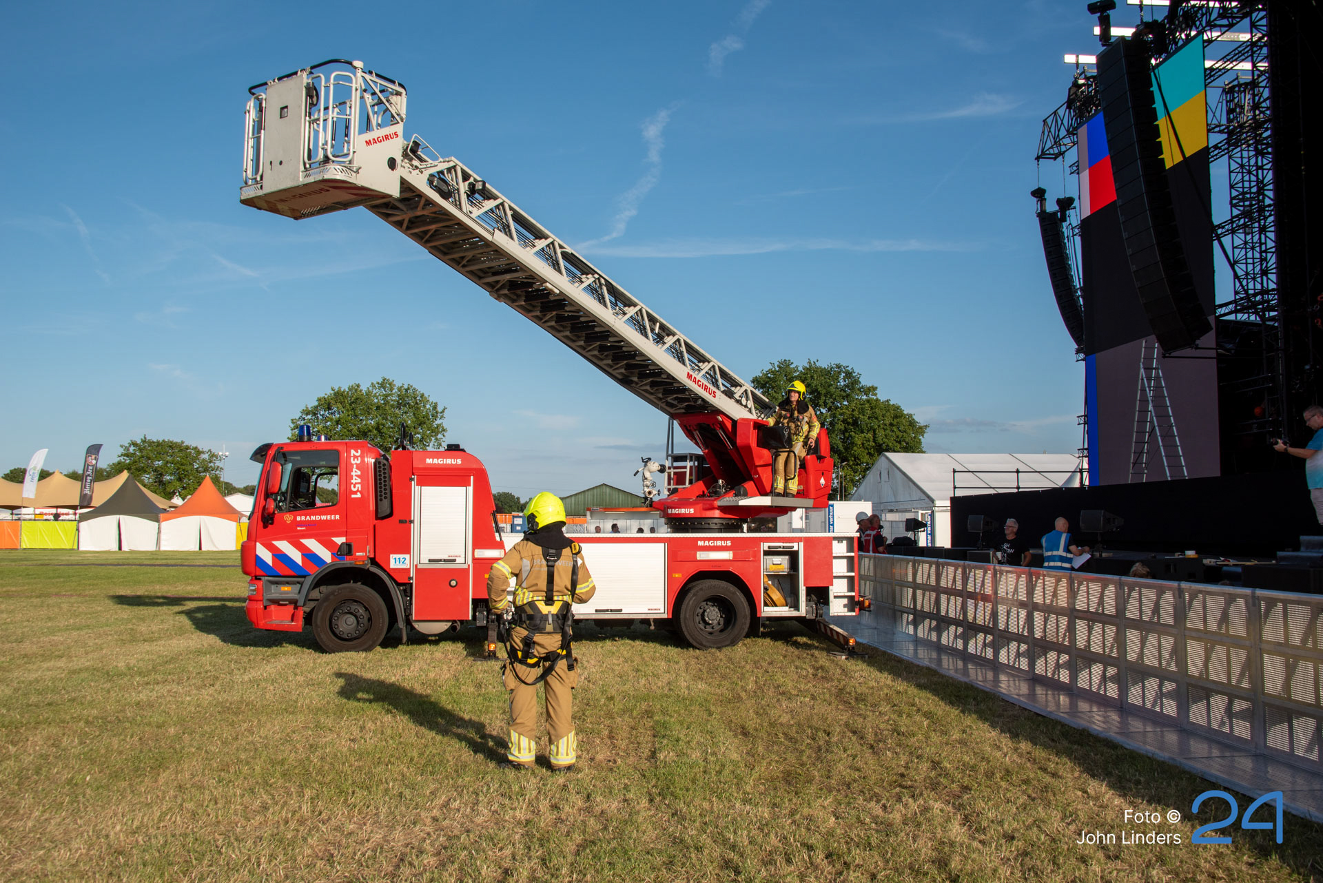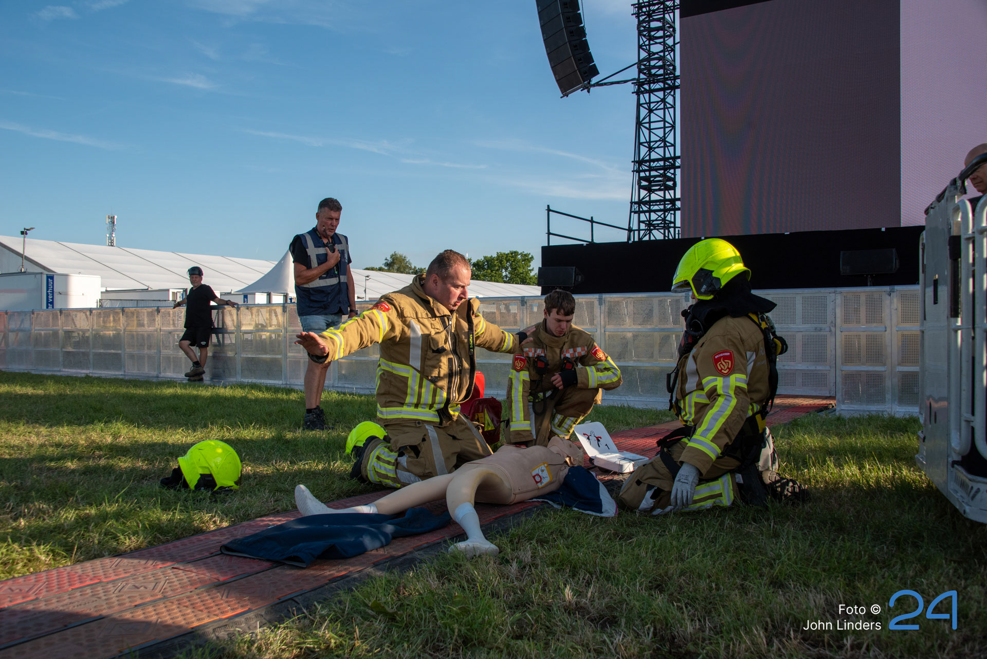 Onder andere burgemeester Vlecken kwam een kijkje nemen tijdens de oefening. De brandweer kwam met diverse voertuigen ter plaatse. Komende vrijdag gaat Bospop 2025 van start.