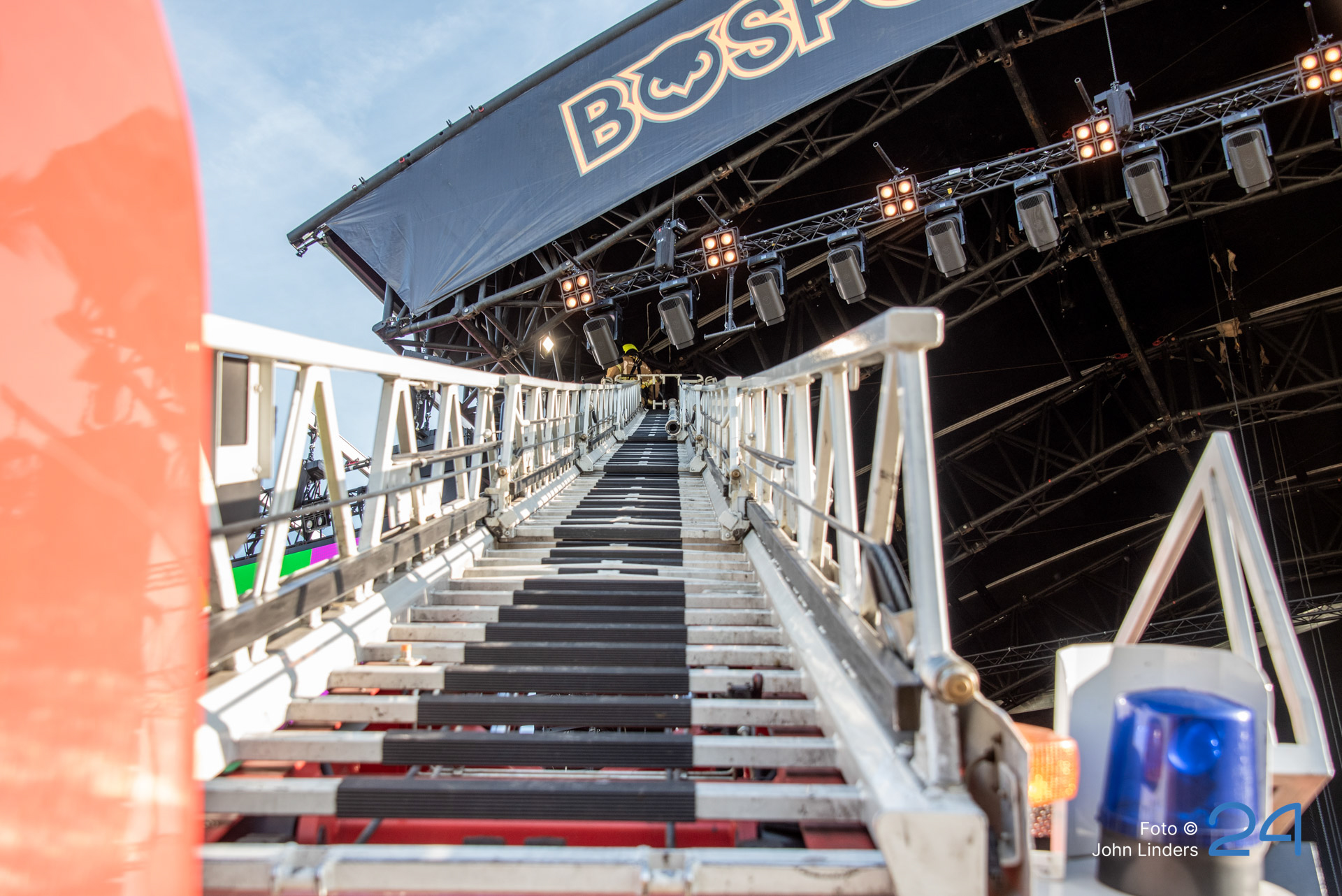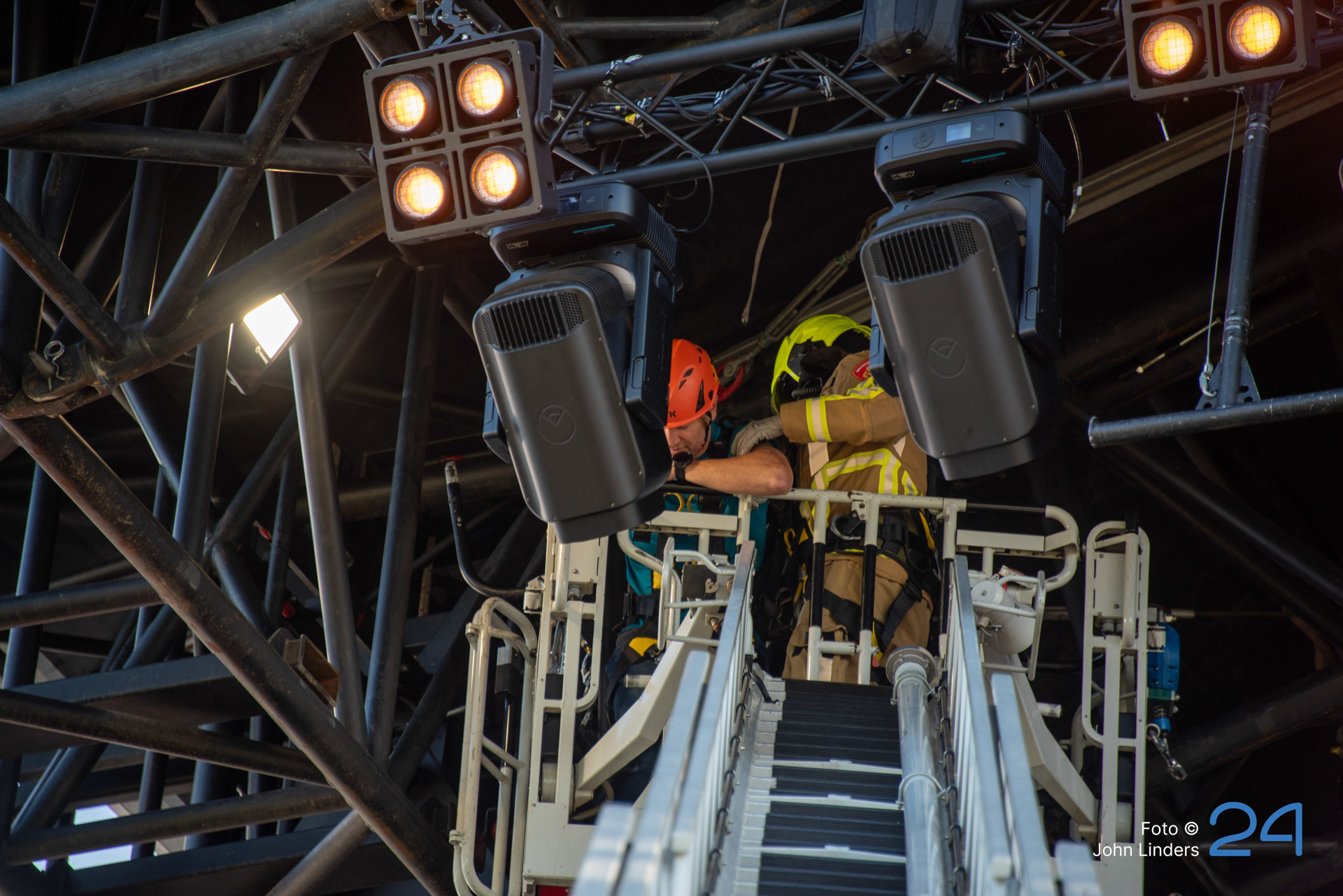 Woensdagavond stond het Bospop-terrein in Weert helemaal in het teken van een grote brandweeroefening.